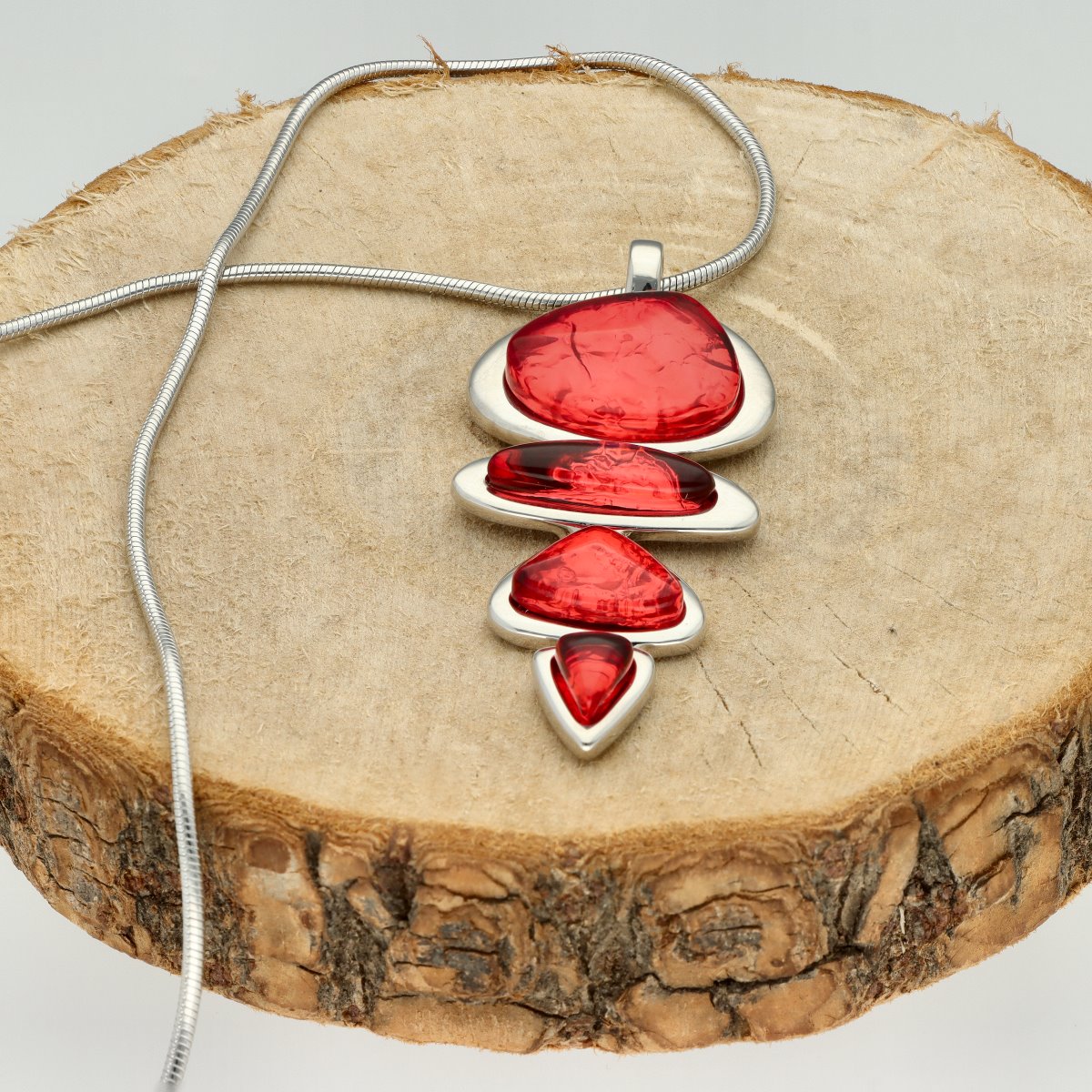 1) Elegancki, dekoldowy naszyjnik wykonany z antyalergicznego metalu i kolorowej żywicy. Długość 42 cm + regulacja.