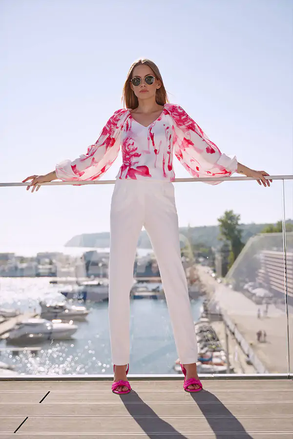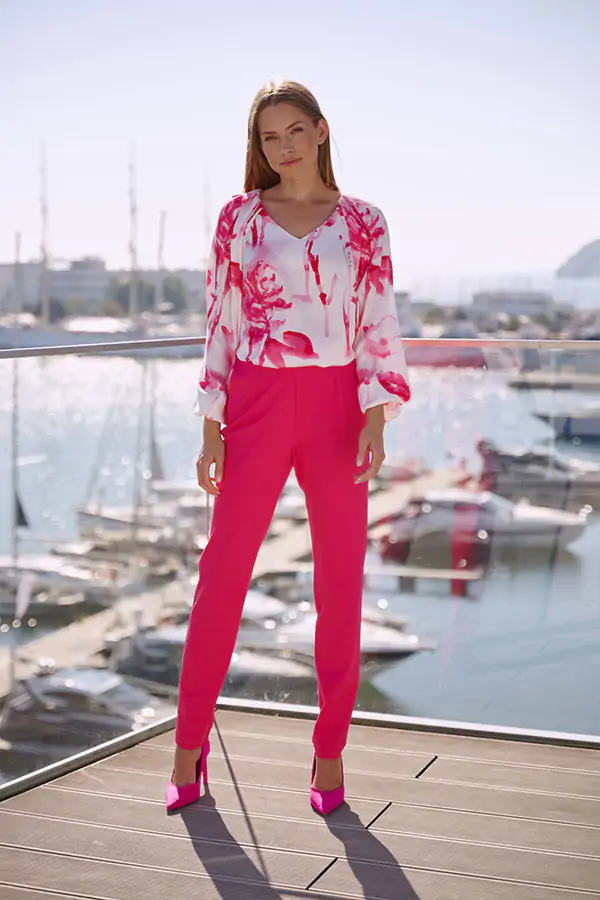 Ta bluzka tworzy idealny zestaw z naszym różowym garniturem.