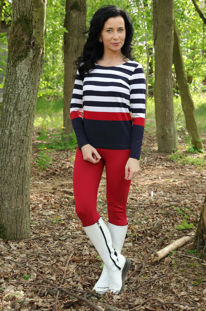 Bluzka ze świetnej jakościowo wiskozy. Klasyczny krój, kolorystyka i wzór w paski, sprawia, że będzie idealna do wielu stylizacji. Uszyta w Polsce. Czas wysyłki 1-2 dni.