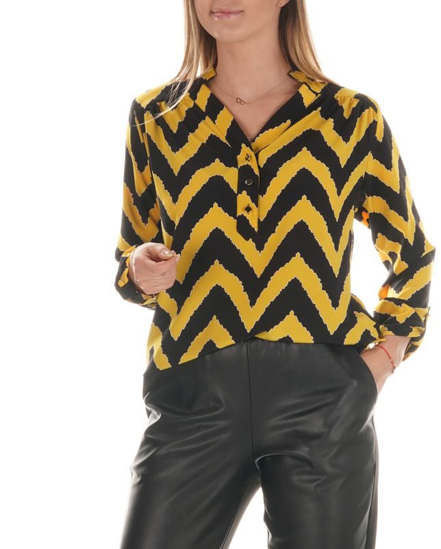 Piękna bluzka w kwiatowy print, ze stójką, lekko ściągana po bokach, z możliwością podwinięcia rękawa.