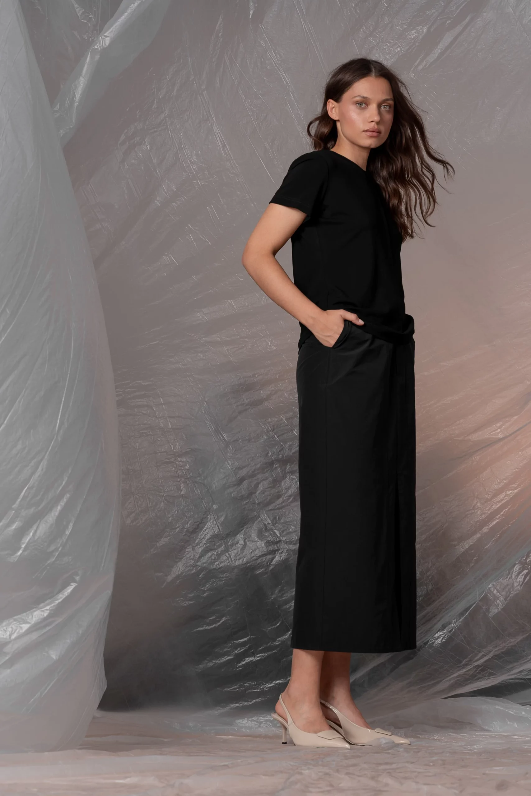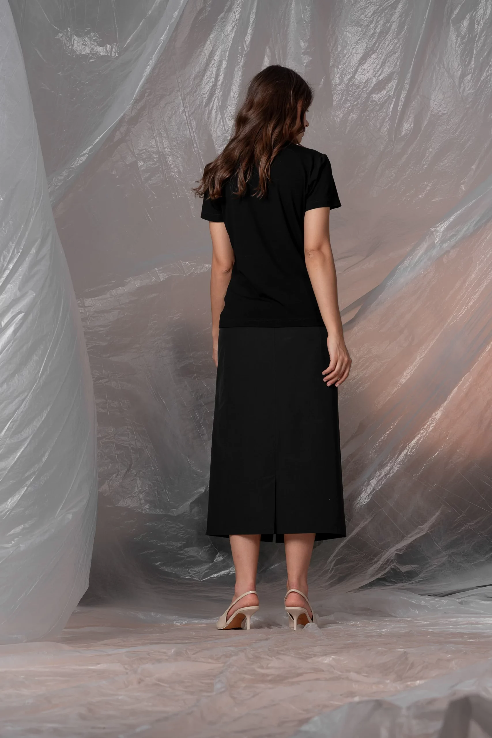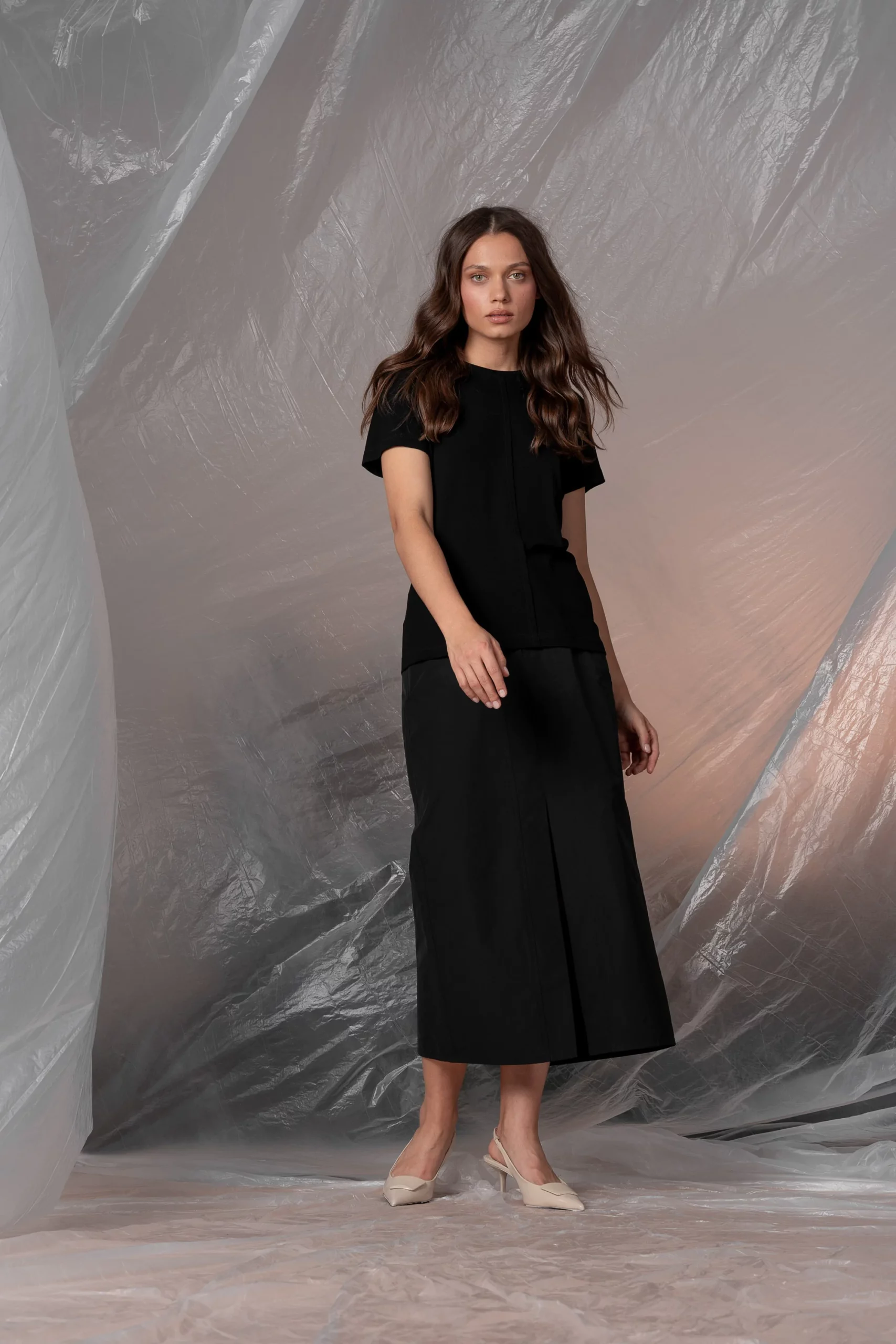 Podkoszulek o klasycznym kroju, delikatnie taliowany. Uszyty z gładkiej, przyjemnej w dotyku wiskozy. Okrągły dekolt. Z przodu ozdobne przeszycie.