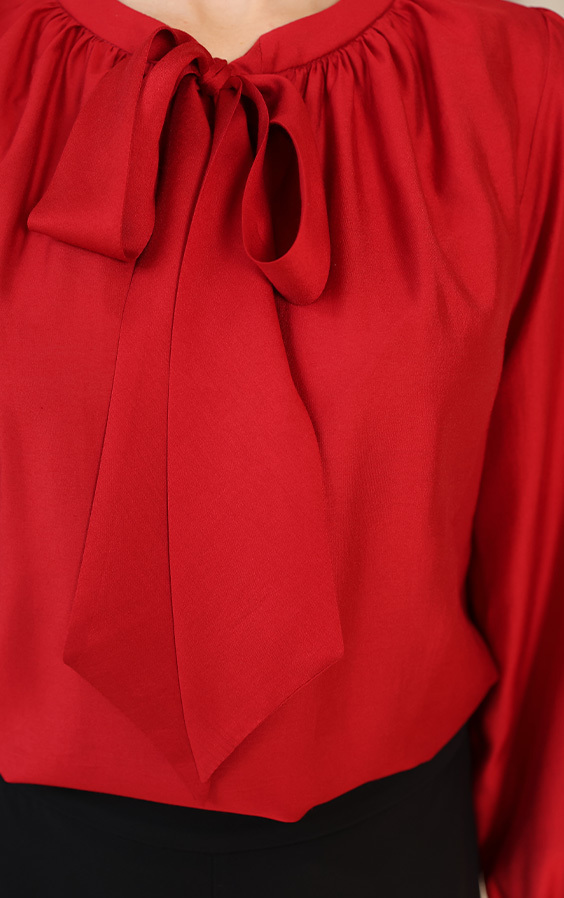 Czerwona bluzka z wiązaniem Teby Kaskada Fashion