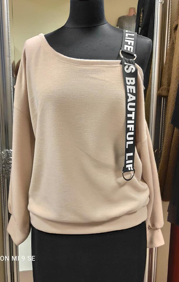 Sweterkowa bluzka na jedno ramię. Pasuje do eleganckich, jak i bardziej sportowych stylizacji. Czas wysyłki 1-2 dni.
