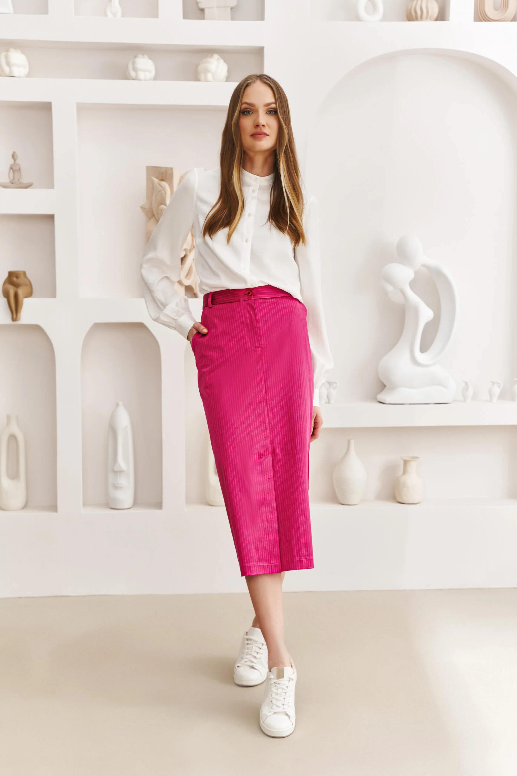 Biała elegancka bluzka jest wszechstronnym elementem garderoby, który idealnie sprawdzi się w stylizacjach do pracy – podkreśli Twoją elegancję i profesjonalizm na każdym spotkaniu