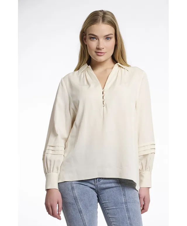 Bluzka Rino & Pelle Igone z kołnierzykiem i ozdobnymi rękawami w kolorze budyniowym.