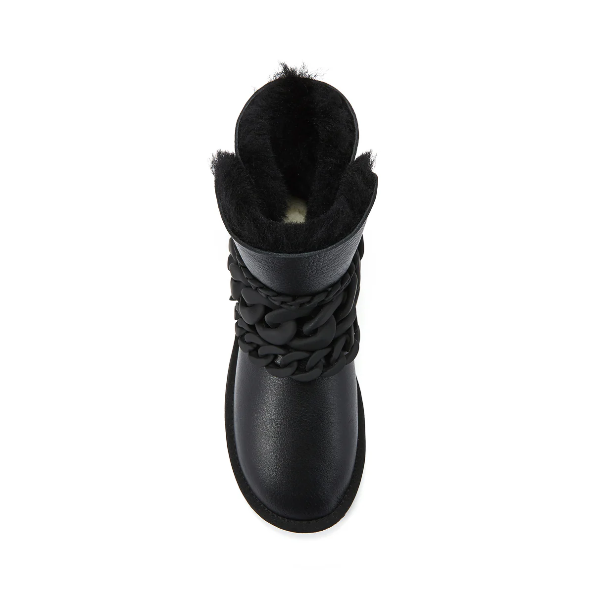 Krótki fason Alice to idealny model łączący styl i wygodę. Miękka skórzana cholewka z metalowym łańcuszkiem z przodu. Rozcięty mankiet ułatwiający zakładanie. Podszewka z supermiękkiej, dwustronnej owczej skóry.