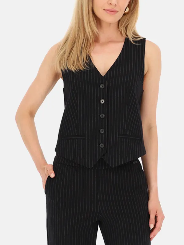 Czarna kasyczna kamizelka damska w paski Red Button