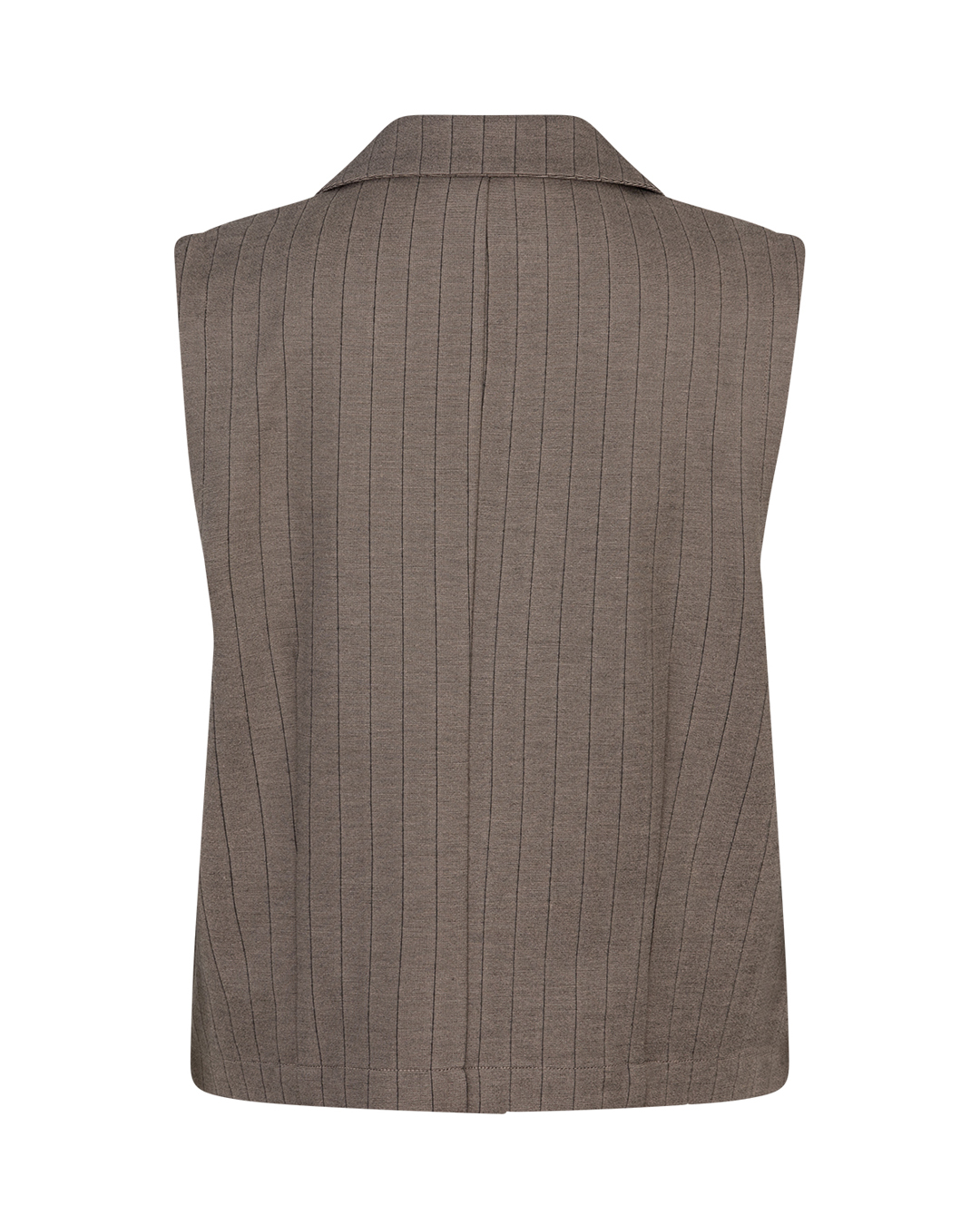 Bezrękawnik z eleganckim kołnierzem z klapami oraz zapięciem na guziki.