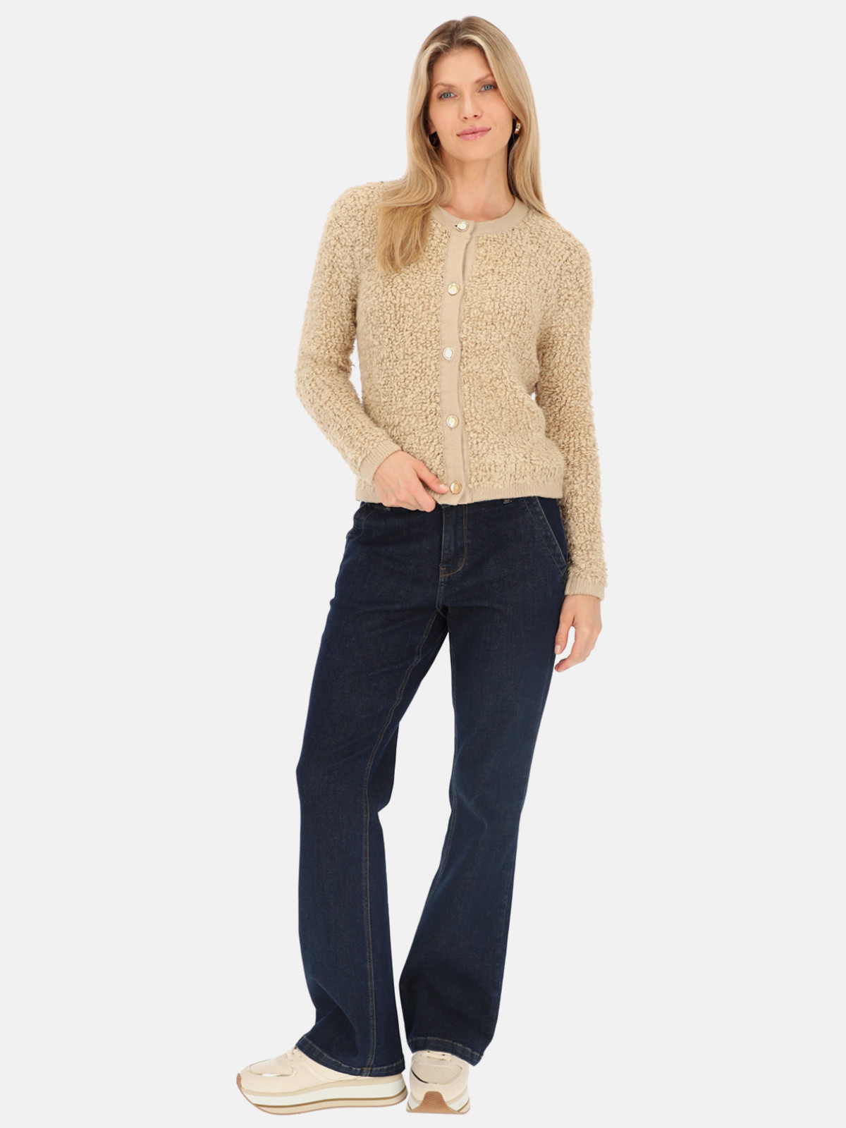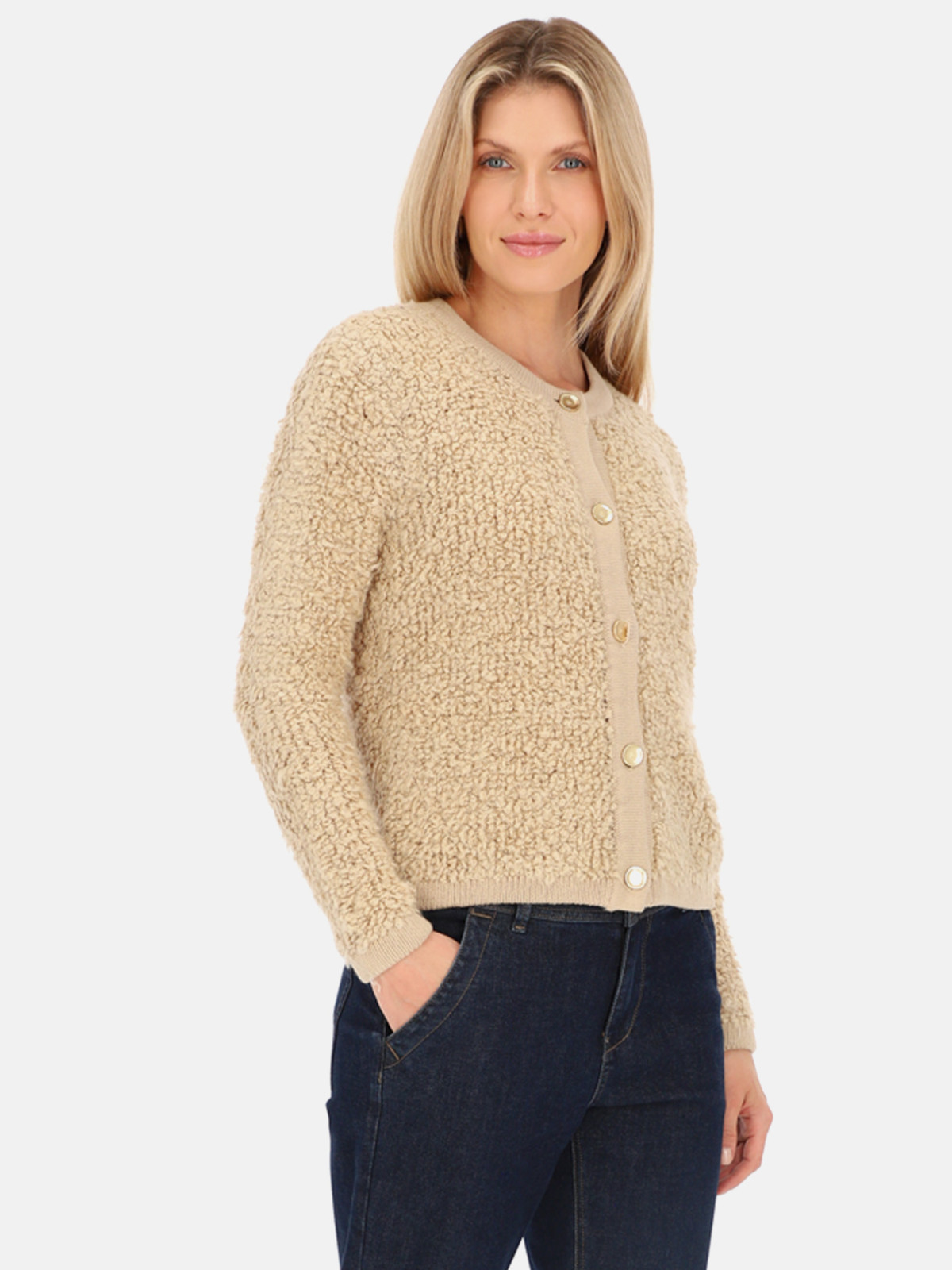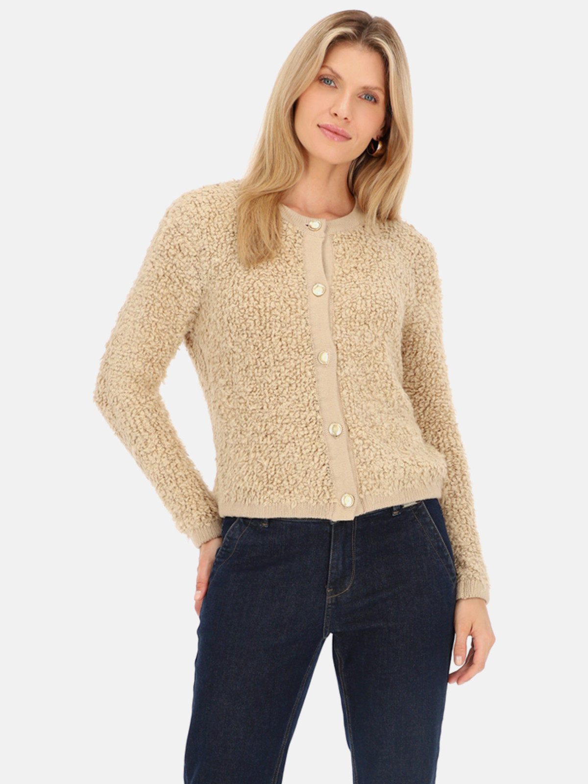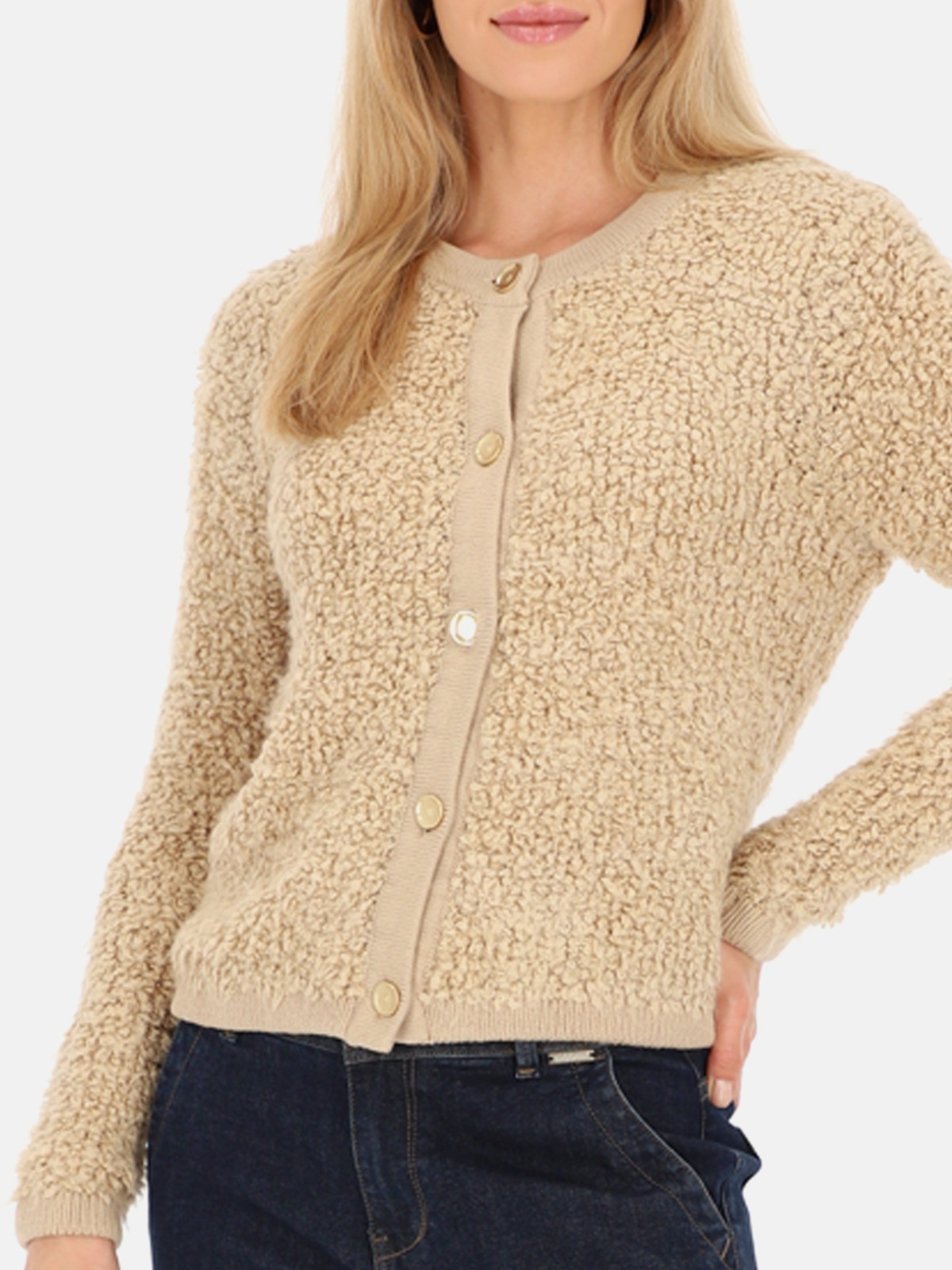 Beżowy miękki kardigan w kolorze beżowym.