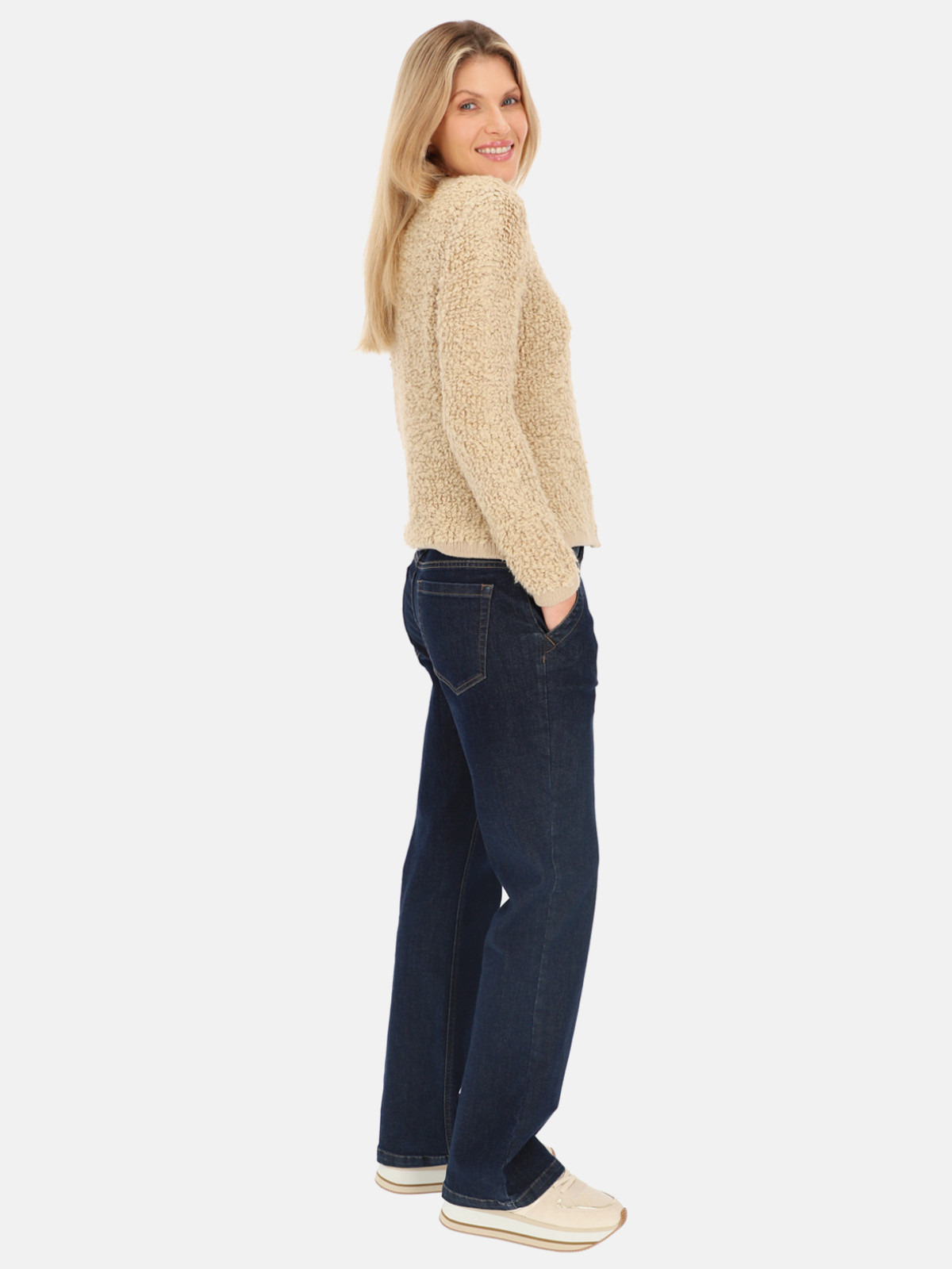 Modelka na zdjęciach ma 176 cm wzrostu i prezentuje produkt w rozmiarze 36.