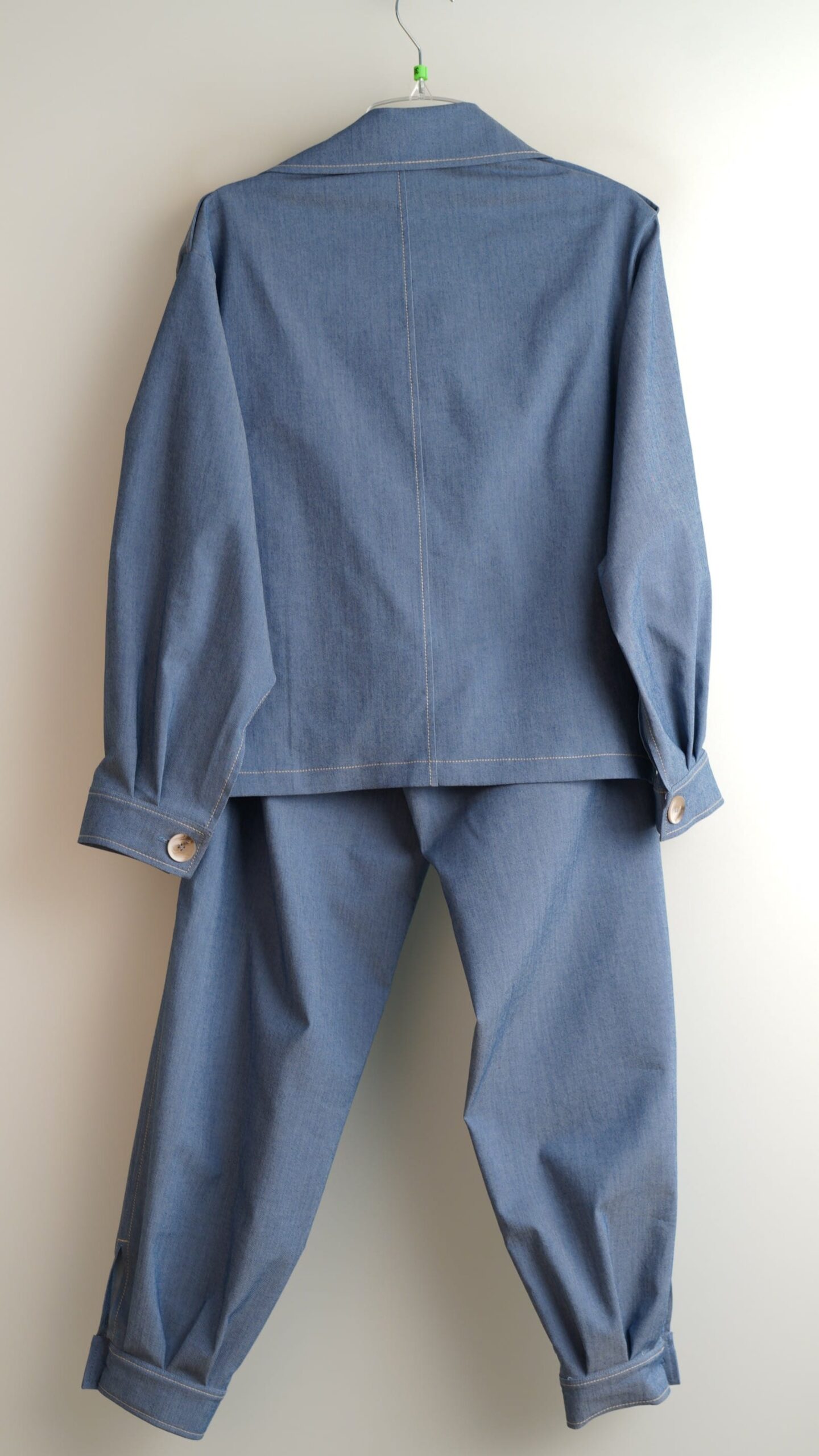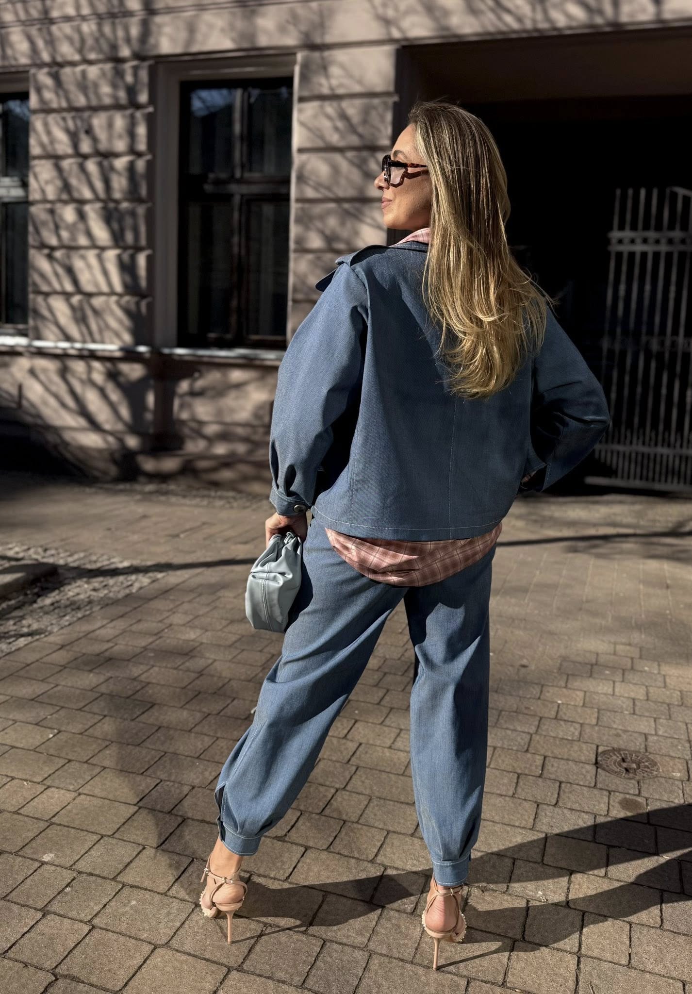 Komplet damski Tessy w kolorze jeansowym – kurtka i spodnie