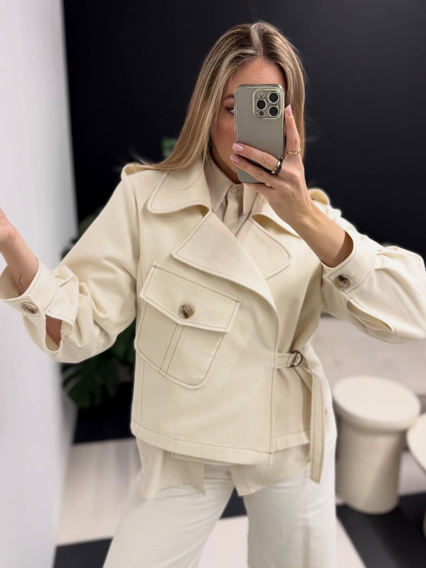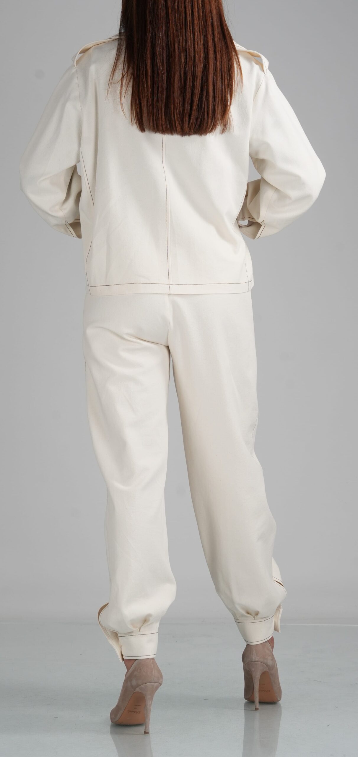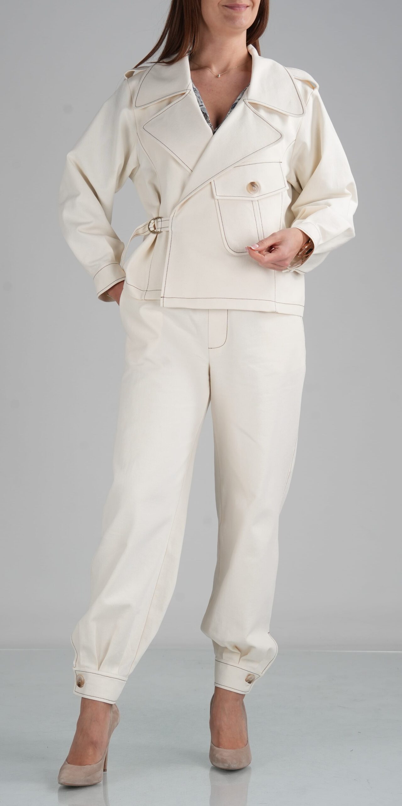 Komplet damski Tessy w kolorze kremowym – kurtka i spodnie