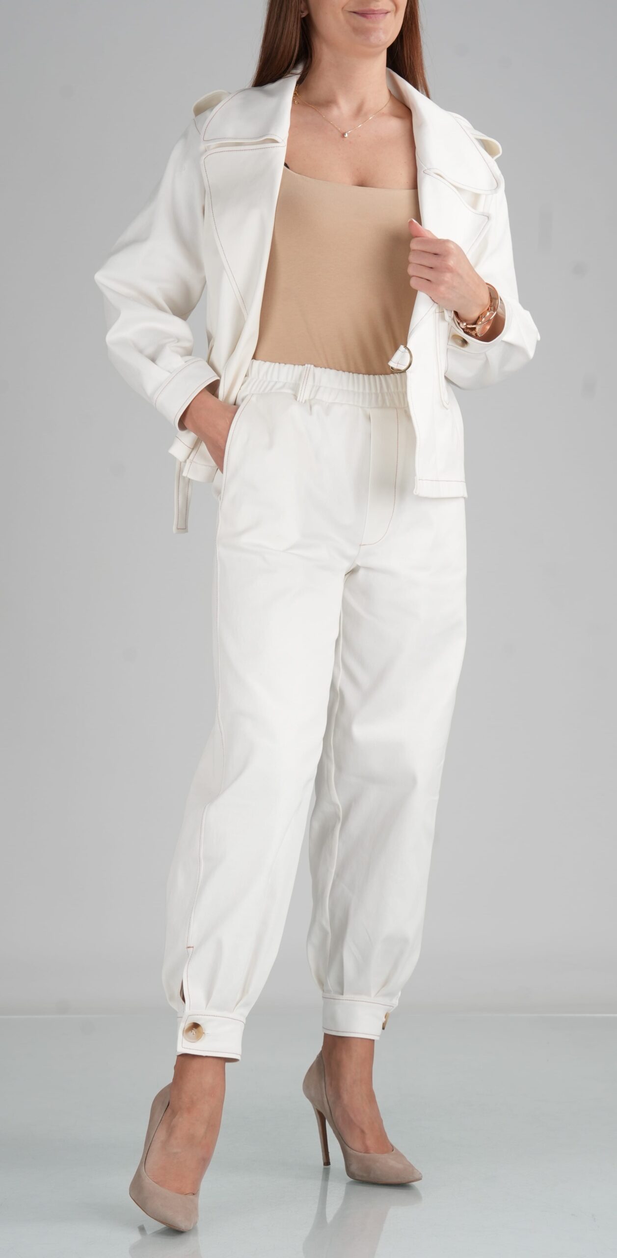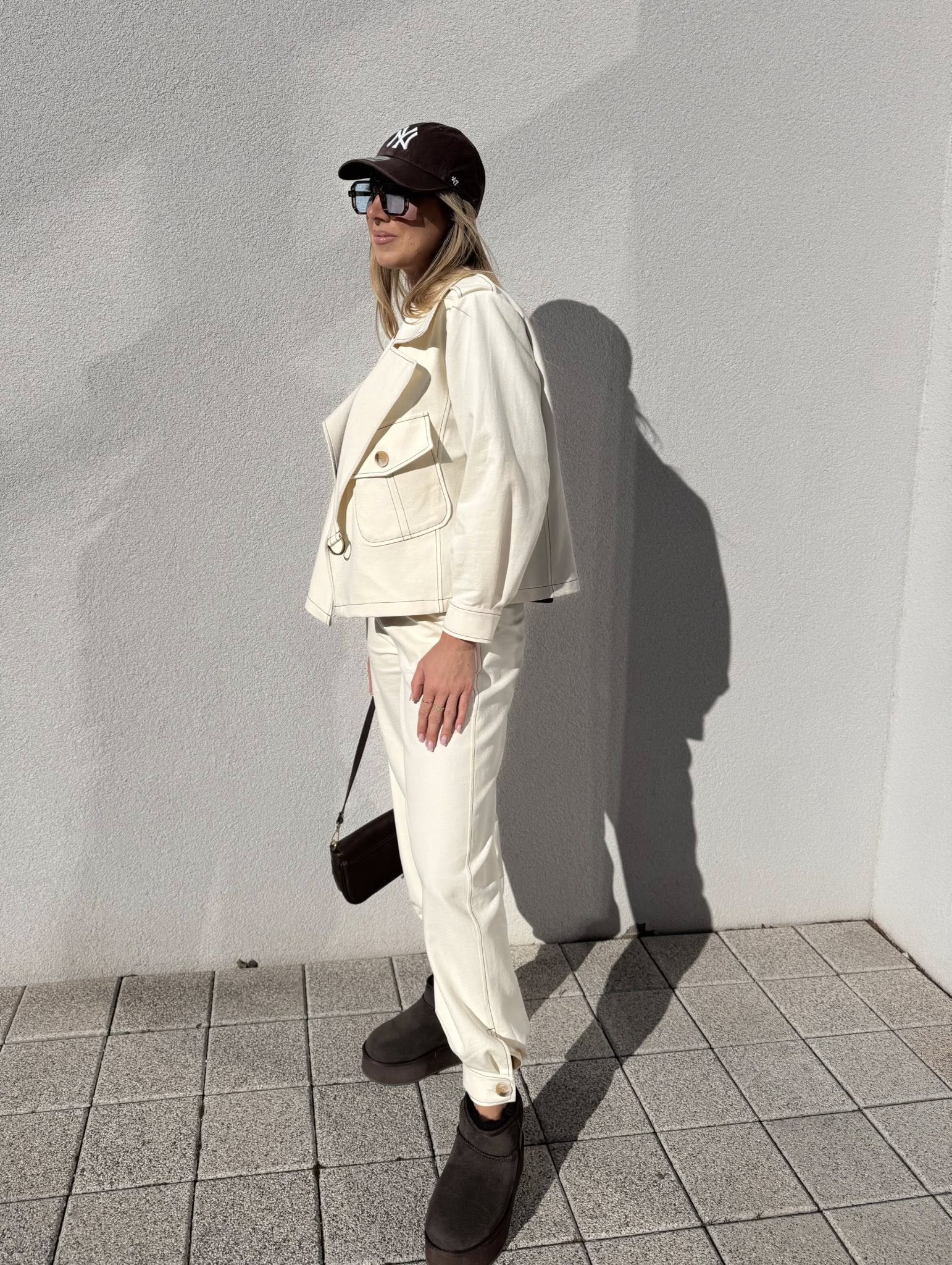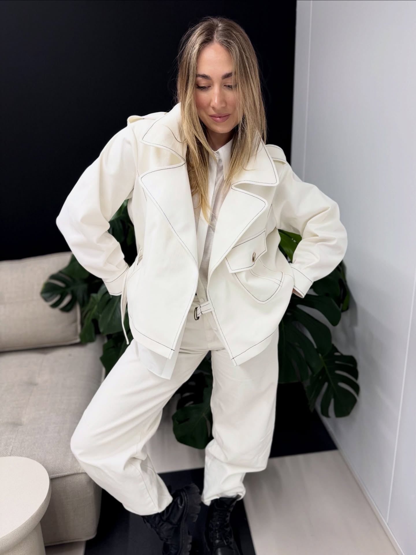 Komplet damski Tessy w kolorze kremowym – kurtka i spodnie