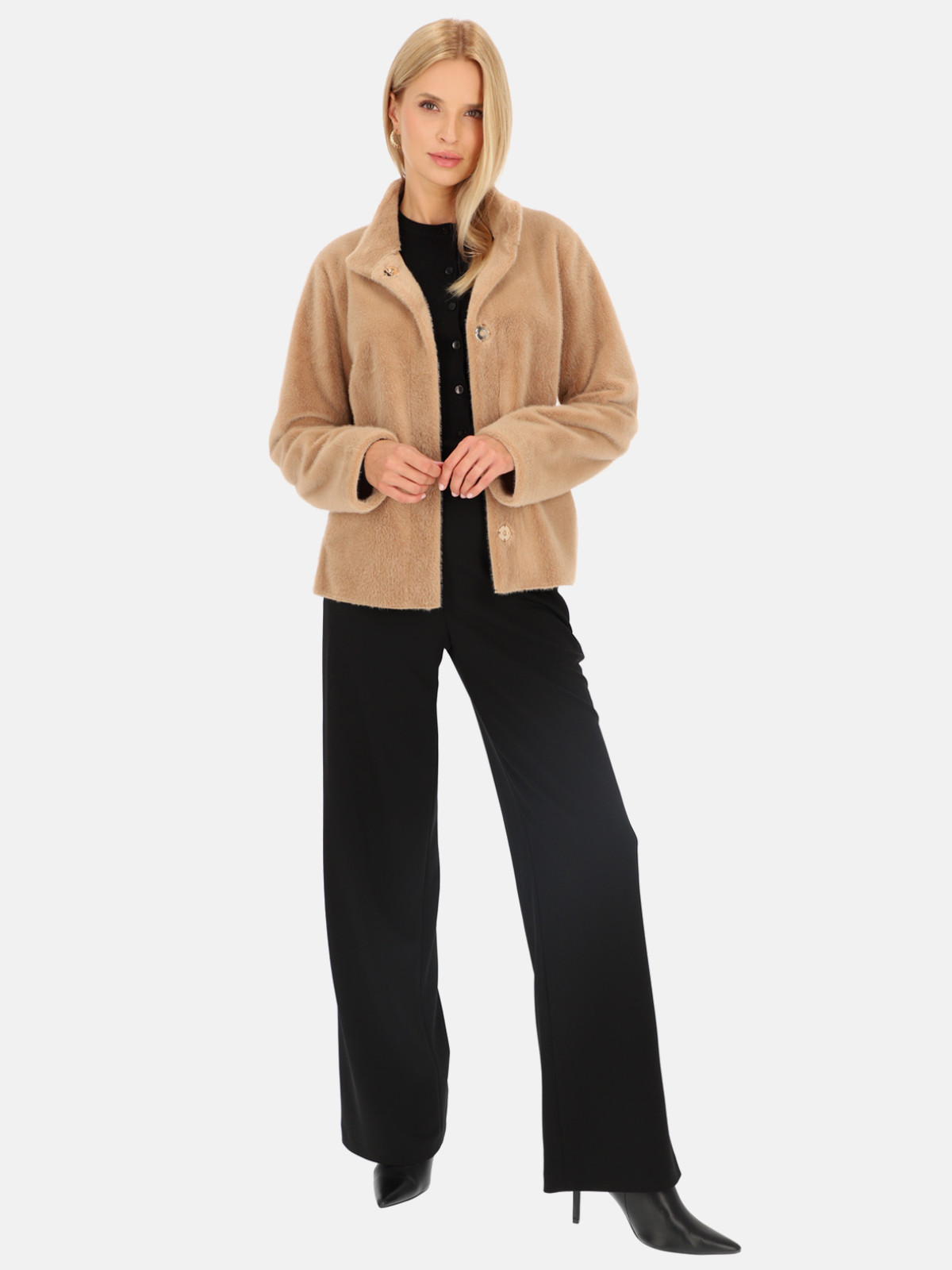 Krótka kurtka ze sztucznego futra Rino & Pelle w kolorze beżowym.