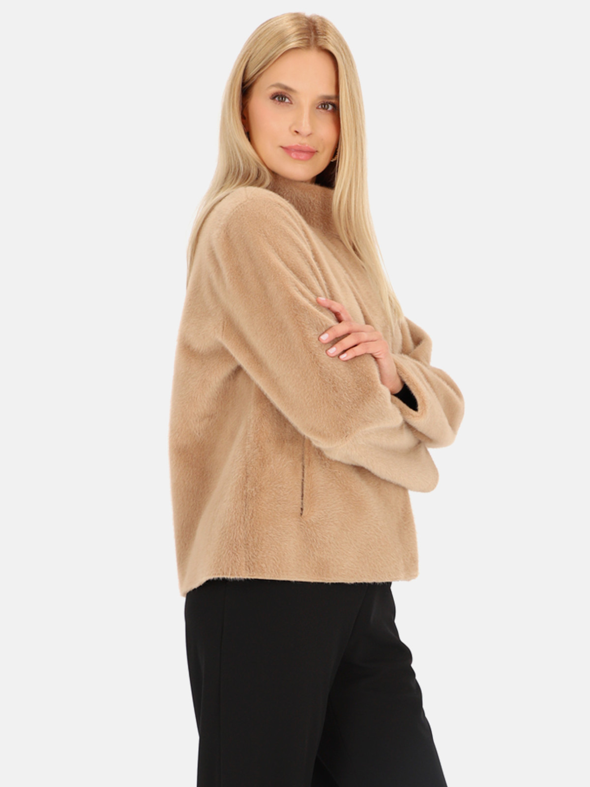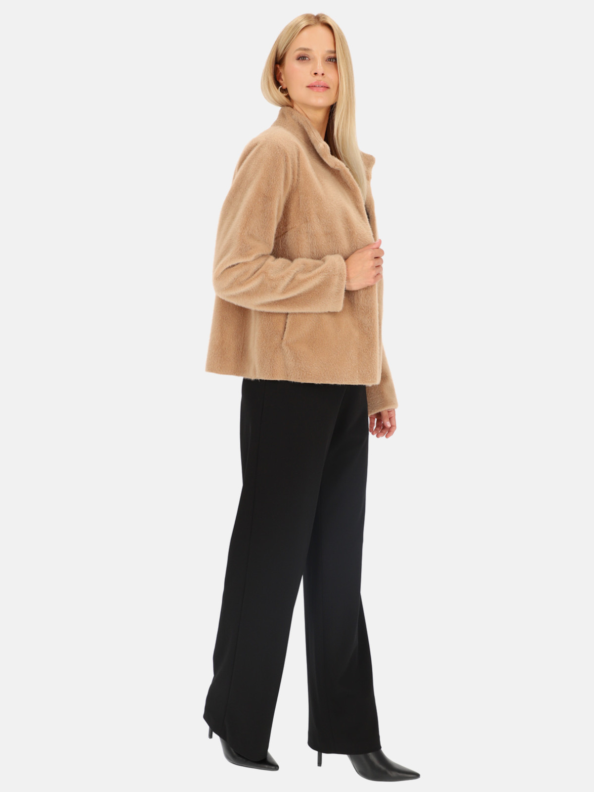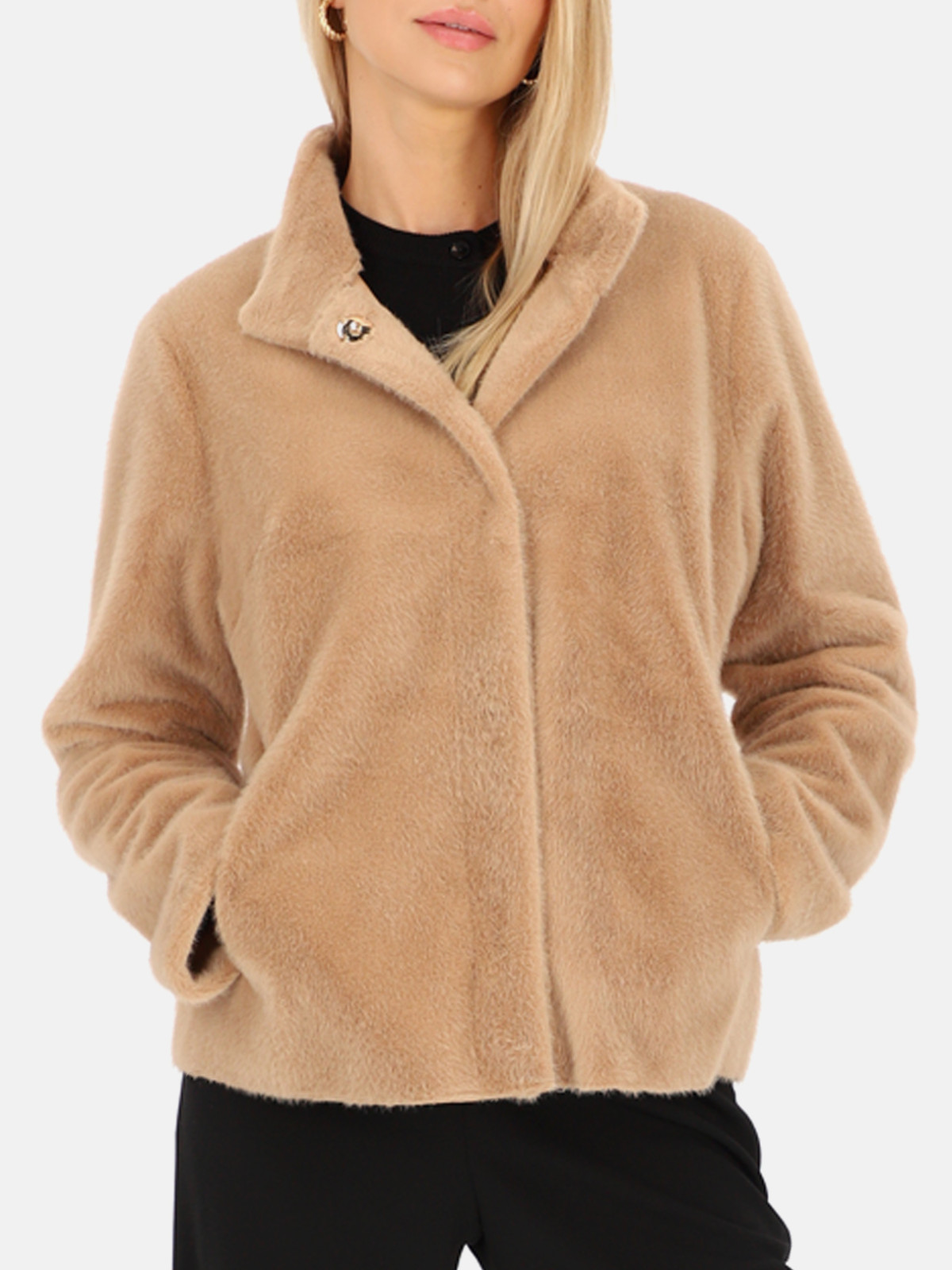 Kurtka-futerko marki Rino & Pelle Madai to połączenie nowoczesnego designu z klasyczną elegancją. Wykonana z niezwykle miękkiego materiału o fakturze przypominającej futro, zapewnia nie tylko komfort noszenia, ale także wyjątkowy styl. Jej prosty, lekko dopasowany krój podkreśla sylwetkę, a delikatny, karmelowy kolor dodaje ciepła i elegancji.