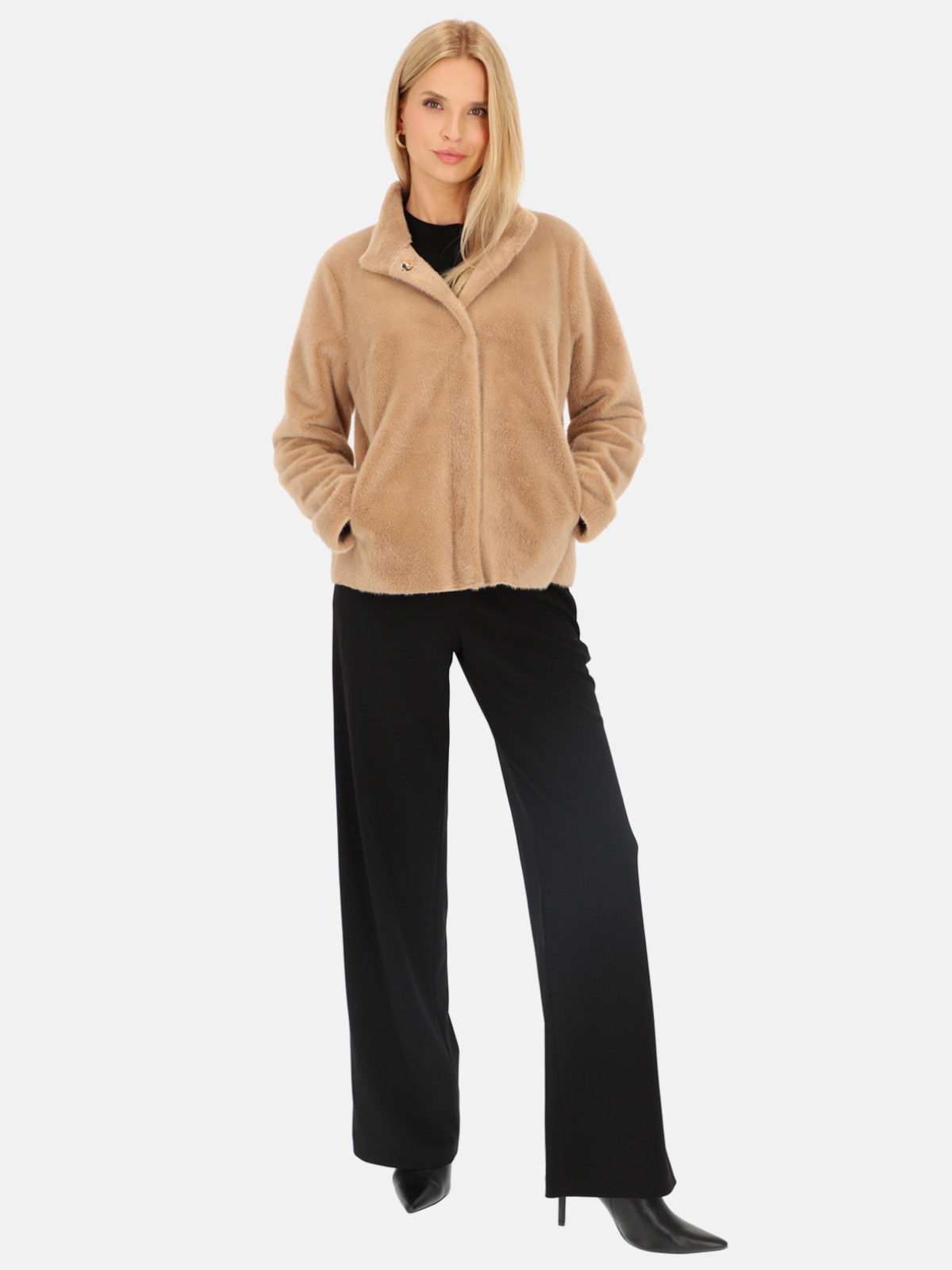 Krótka kurtka ze sztucznego futra Rino & Pelle w kolorze beżowym. Świetnie prezentuje się w zestawieniu z eleganckimi spodniami lub sukienką, dodając każdej stylizacji szyku i wyrafinowania. Czas wysyłki 1-2 dni.