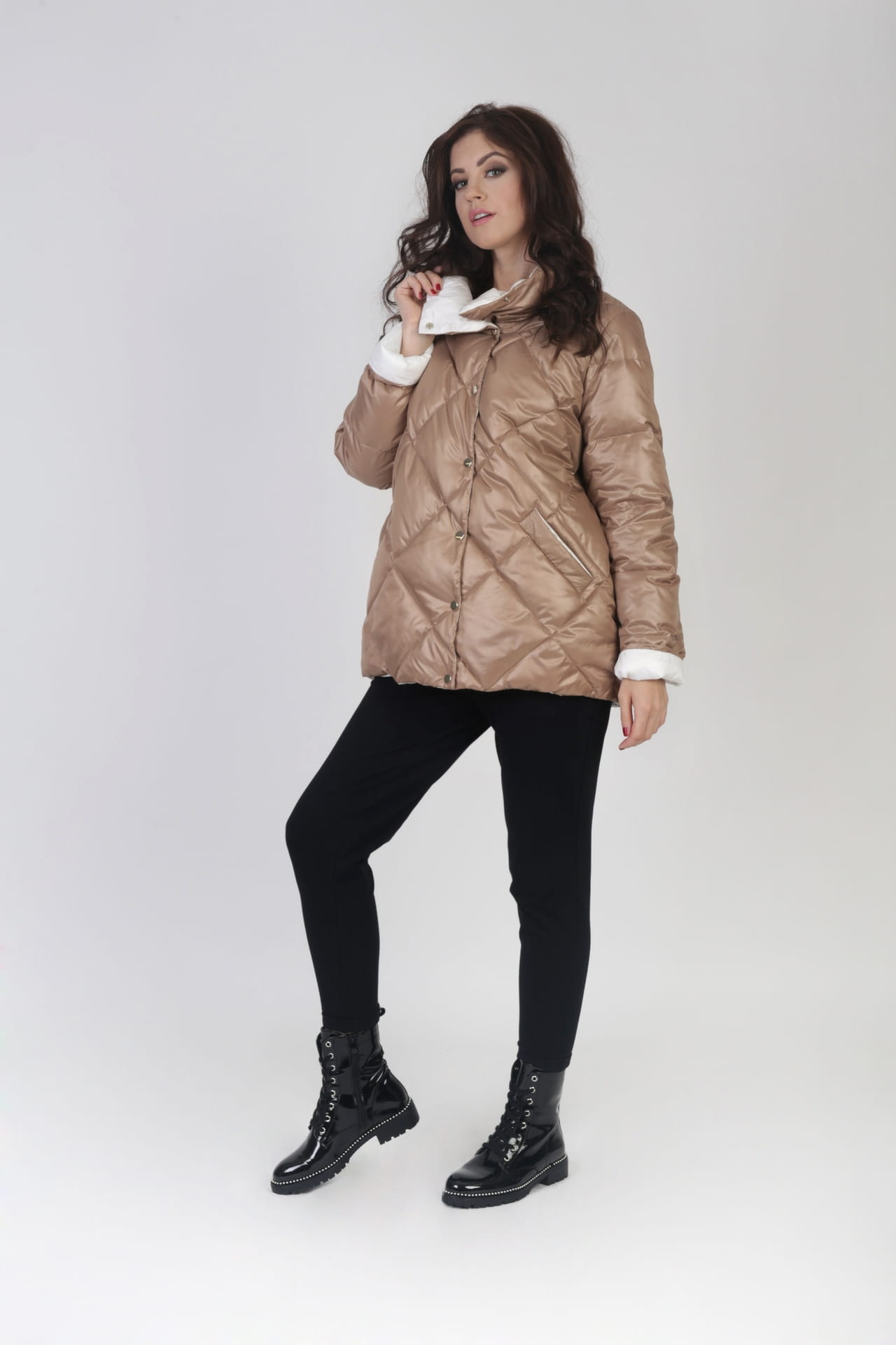 - krótka kurtka w kolorze camelowym, ocieplana wysokiej jakości wypełnieniem
