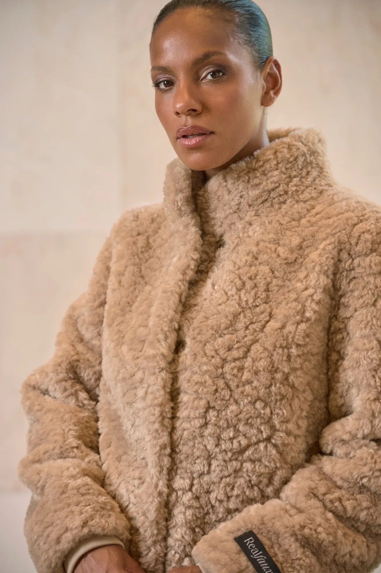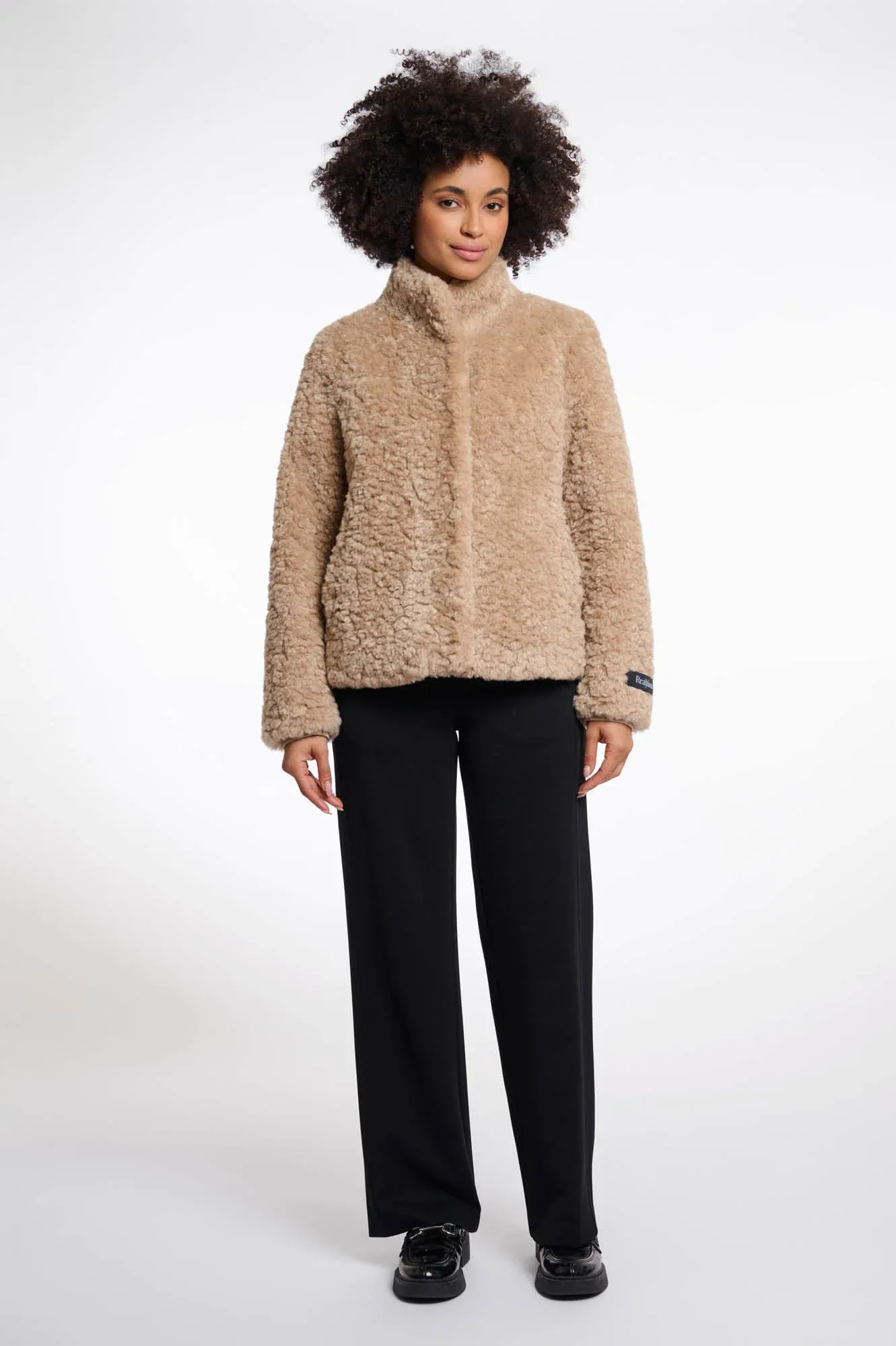 Krótka kurtka ze sztucznego karakuła Kion marki Rino&Pelle w kolorze beżowym.