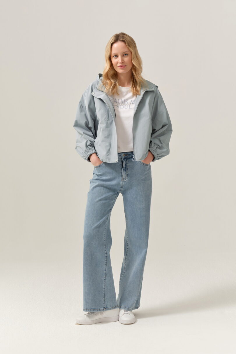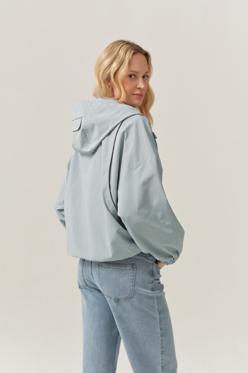 Lekka kurtka FÉRIA w odcieniu jasnego błękitu z kapturem.
