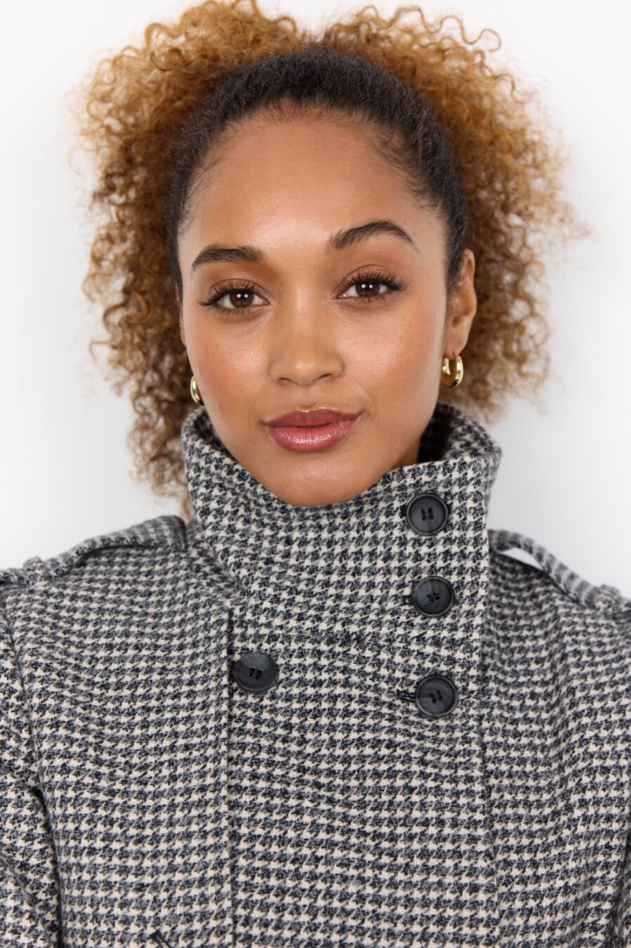 SC-FELISIA 1 to kurtka we wzór kurzej stopki, wykonana z wytrzymałej mieszanki 52% poliestru, 30% wełny, 7% akrylu, 6% poliamidu, 5% wiskozy.