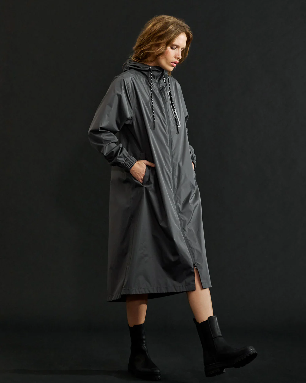 Ta swobodna kurtka przeciwdeszczowa firmy TIF TIFFY ma dwie boczne kieszenie, kieszeń na piersi i kaptur. Kurtka przeciwdeszczowa jest wykonana z wodoodpornego, lekkiego materiału z podklejonymi szwami. Wewnętrzna strona wykonana jest z lekkiego poliestru, który pozwala skórze oddychać, zapewniając wygodę przez cały dzień.