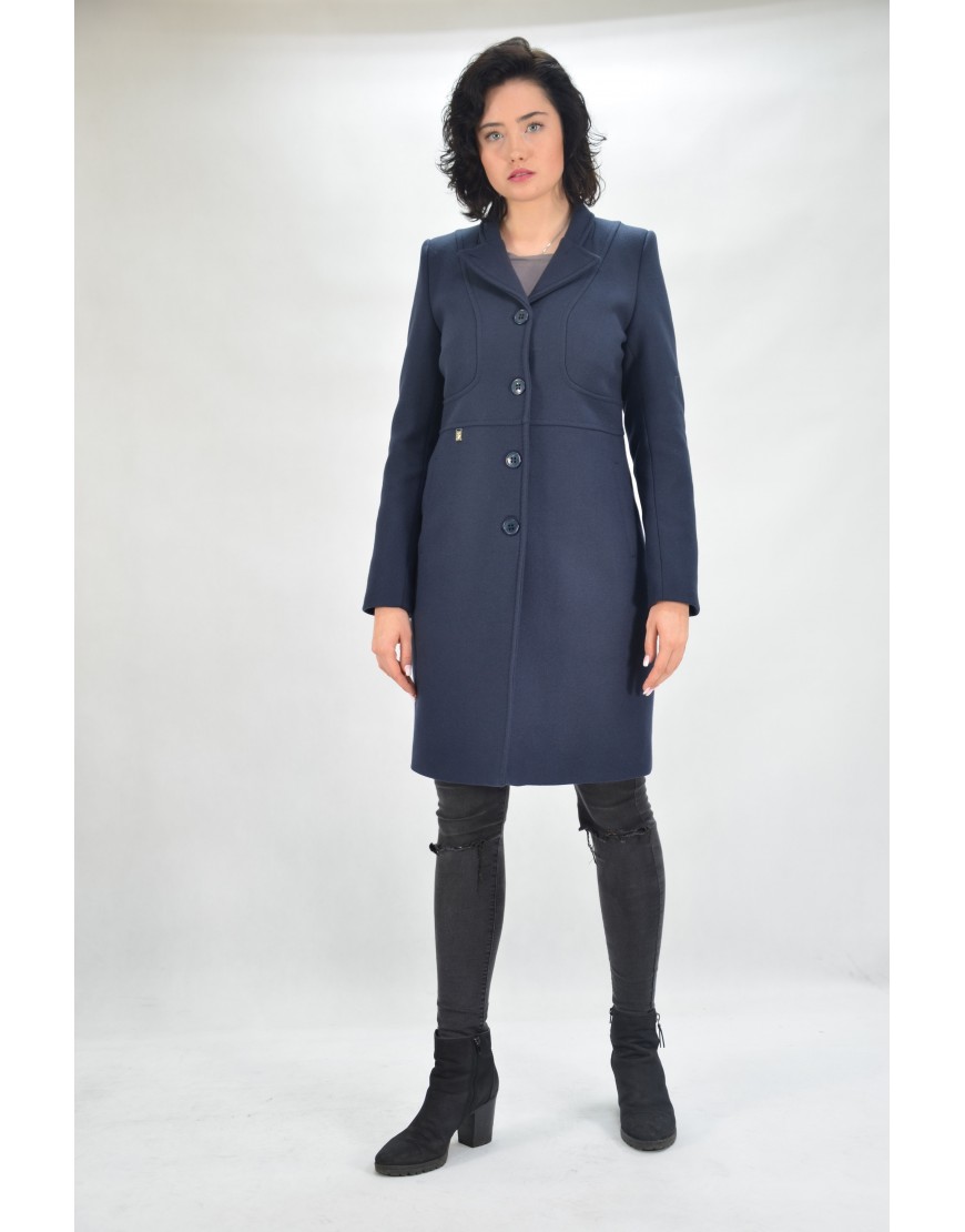 Elegancki płaszcz wełniany w kolorze głębokiego granatu. Uszyty w Polsce. Czas dostawy 1-2 dni.