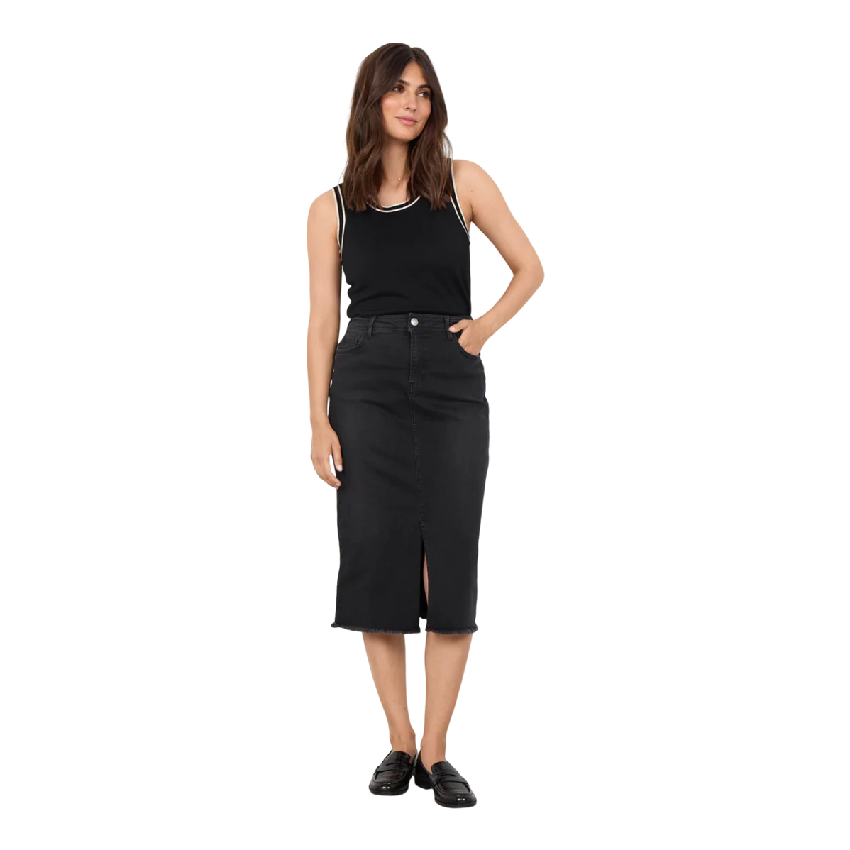 idealna do urozmaicenia garderoby. Dzięki klasycznemu czarnemu kolorowi i eleganckiemu, prostemu krojowi można go bez problemu połączyć zarówno z elegancką bluzką, jak i swobodną koszulką. Idealna na co dzień lub nieformalne spotkanie, a jej ponadczasowy design sprawia, że będzie podstawą każdej stylizacji.