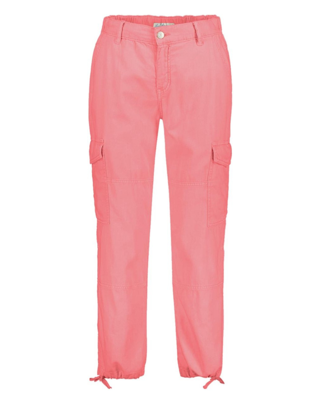 Wiskozowo-lniane spodnie Red Button w stylu cargo w letnim, koralowym kolorze . Lekka, miękka, elastyczna tkanina sprawia, że ​​spodnie idealnie dopasowują się do ciała. Możesz nosić je ściągnięte u dołu, lub wyjąć sznurek i nosić luźną nogawkę.