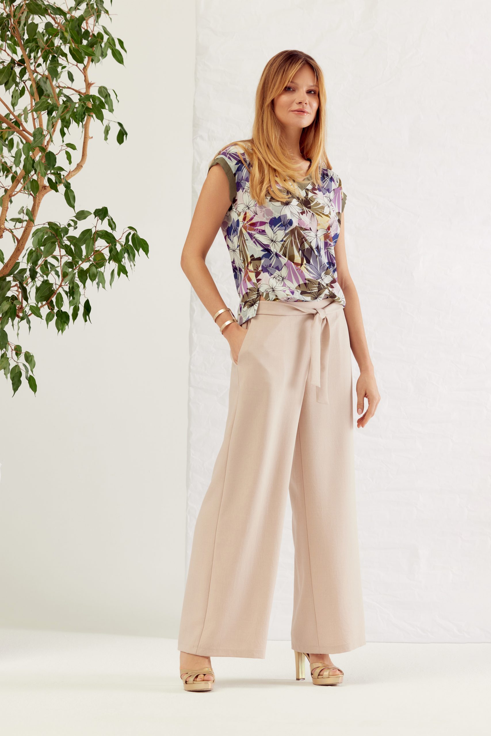 Beżowe spodnie z szerokimi nogawkami, z gumą w talii. Są bardzo lekkie i przewiewne. Idealnie sprawdzą się w wielu letnich stylizacjach. Uszyte w Polsce. Czas wysyłki 1-2 dni.