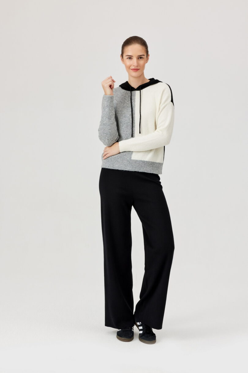 Czarne dzianinowe spodnie FÉRIA z szeroką nogawką