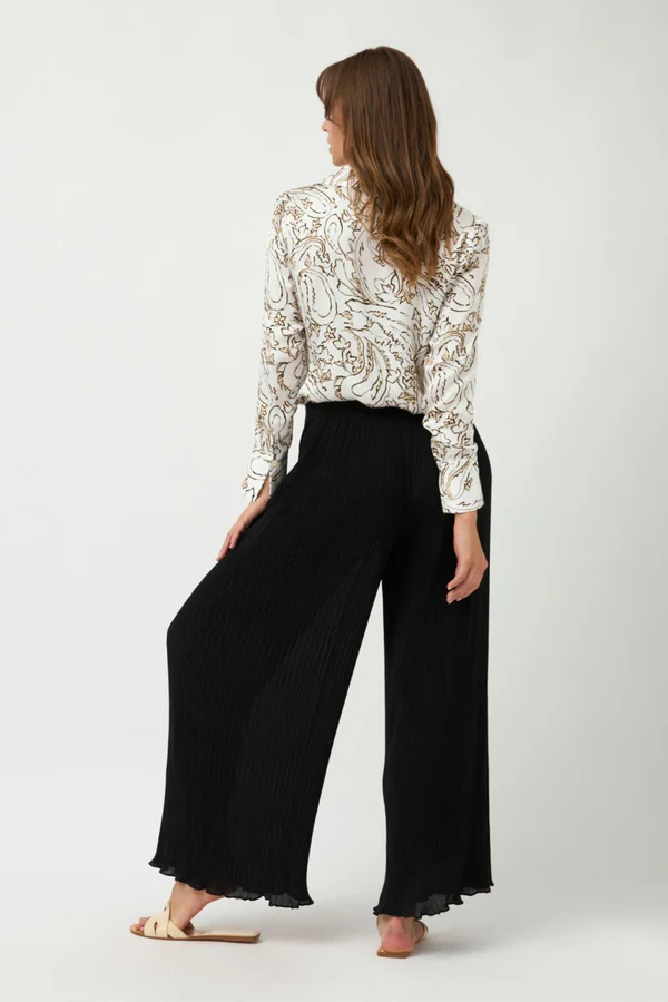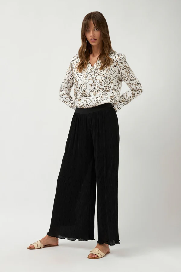 Spodnie plisowane z szerokimi nogawkami.