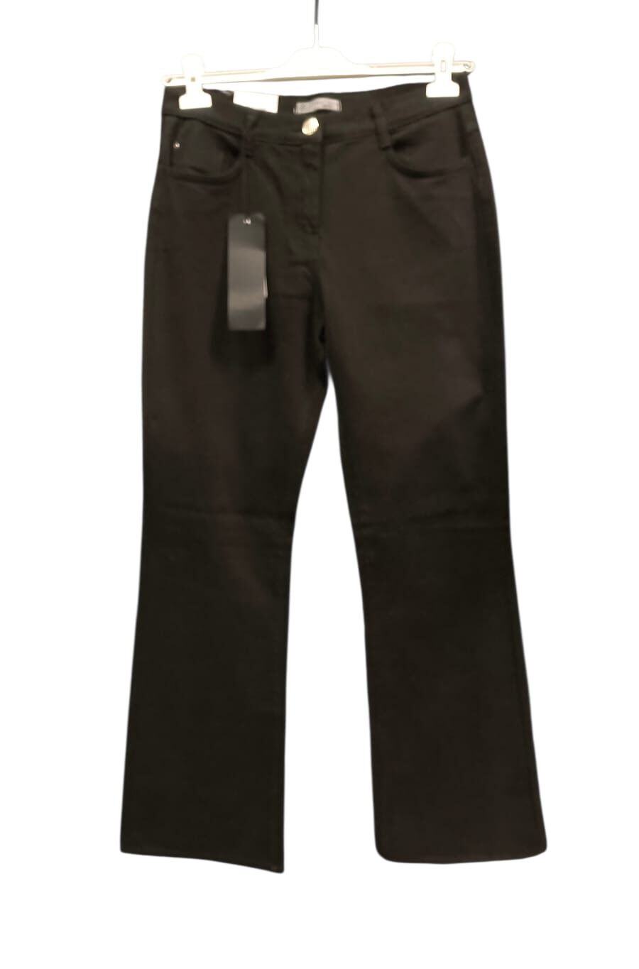 Czarne bawełniane spodnie a’la jeans z lekko rozszerzaną nogawką.