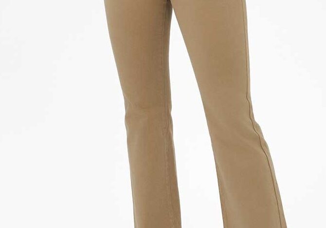 Kształt dzwonów w kolorze karmelowym dodaje klasy, a szeroka nogawka optycznie wydłuża nogi.