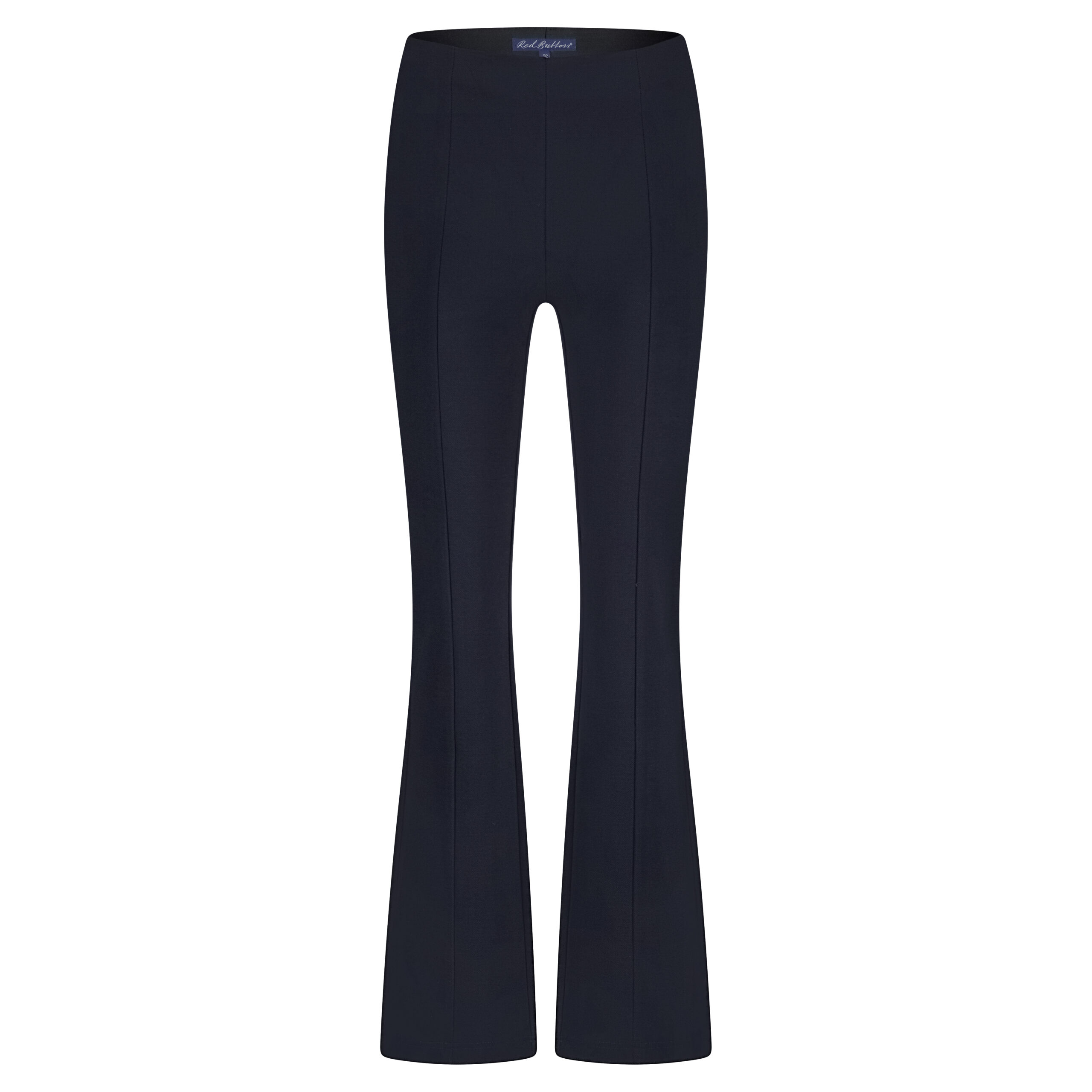 Granatowe spodnie Bibette Fancy Twill  Red Button wykonane z miękkiej mieszanki wiskozy, poliamidu i elastanu,  zapewniają pełną swobodę ruchów. Tkanina lekko strukturalna zapewnia dobre krycie. Spodnie z wysokim stanem, guma w talii, z rozszerzana nogawką. Niezależnie od tego, czy wybierzesz strój casualowy, czy bardziej formalny, te spodnie z łatwością dopasują się do Twojego stylu.