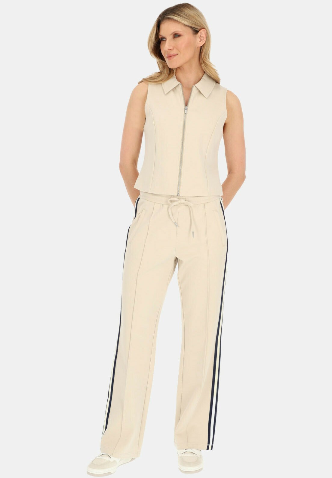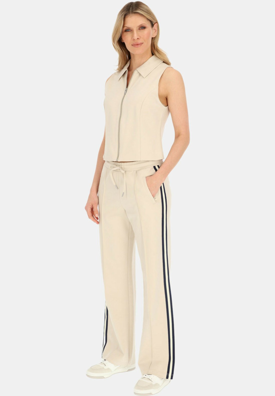 Spodnie Colette Red Button to idealne połączenie wygody i nowoczesnego stylu. Z wciąganym paskiem i szerokimi nogawkami, spodnie te oferują swobodny, a zarazem elegancki wygląd. Kontrastowy pasek z boku dodaje sportowego akcentu, dzięki czemu są uniwersalnym elementem garderoby, który sprawdzi się zarówno w eleganckich, jak i codziennych stylizacjach. Wykonane z miękkiej, elastycznej tkaniny, zapewniają całodzienny komfort.