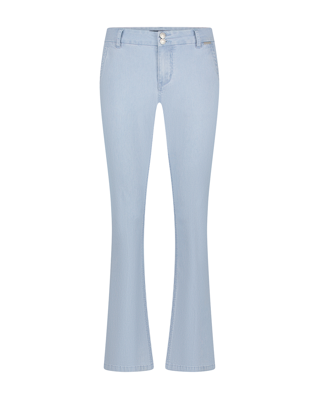 Bibette fancy chambray mają dopasowany krój w udach i biodrach i rozszerzają się od kolana do dołu.