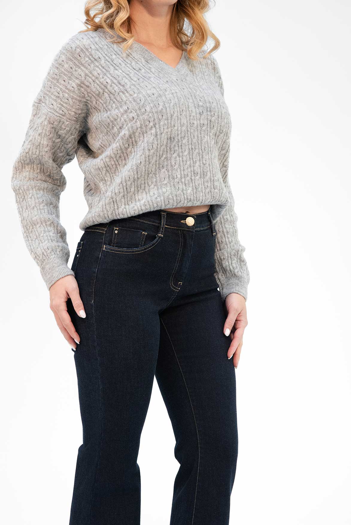 Klasyczne jeansy damskie w eleganckim, ciemnym granacie 💙 Ponadczasowy fason i wyjątkowy komfort w jednym. Spodnie z nieco podwyższonym stanem, wykonane z wysokogatunkowej bawełny jeans z dodatkiem innowacyjnego włókna elastomultiester, pięknie dopasowują się do sylwetki i zapewniają wygodę przez cały dzień. Starannie zaprojektowany krój nogawek oraz rozmieszczenie kieszeni optycznie wysmuklają figurę i subtelnie podkreślają kobiece kształty. To model, który pracuje razem z Tobą – bez ucisku i bez ograniczeń. Uszyte we Włoszech.