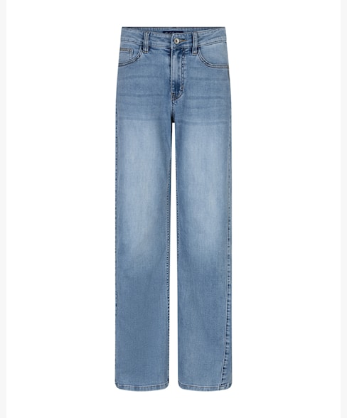 Stylowe jeansy o nowoczesnym kroju z wysokim stanem, który pięknie podkreśla talię i optycznie wydłuża sylwetkę. Model ma wygodny fason typu regular fit w biodrach oraz modne, szerokie nogawki (wide leg), które nadają stylizacji swobodnego, współczesnego charakteru. Charakterystycznym elementem są ozdobne, skośne przeszycia, które dodają spodniom oryginalnego wyglądu. Jasny odcień Light Blue doskonale sprawdzi się w wiosenno-letnich stylizacjach. Elastyczny denim zapewnia komfort i swobodę ruchów przez cały dzień.
