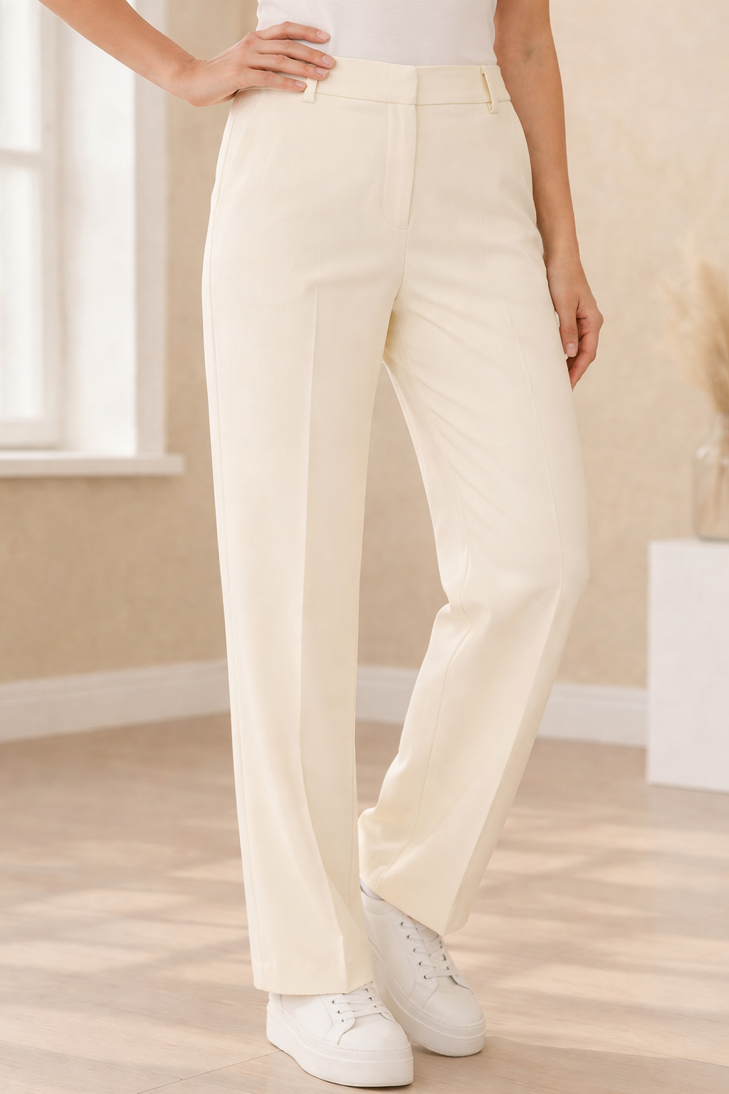 Spodnie Zara (model taki jak Andi) w kolorze kremowym stworzone dla współczesnej kobiety, która ceni sobie zarówno styl, jak i wygodę. Są idealne dla miłośniczek ponadczasowej klasyki, które szukają bazy do eleganckich i biznesowych stylizacji. Fason nogawek typu wide leg doskonale maskuje drobne niedoskonałości i pięknie wydłuża nogi.