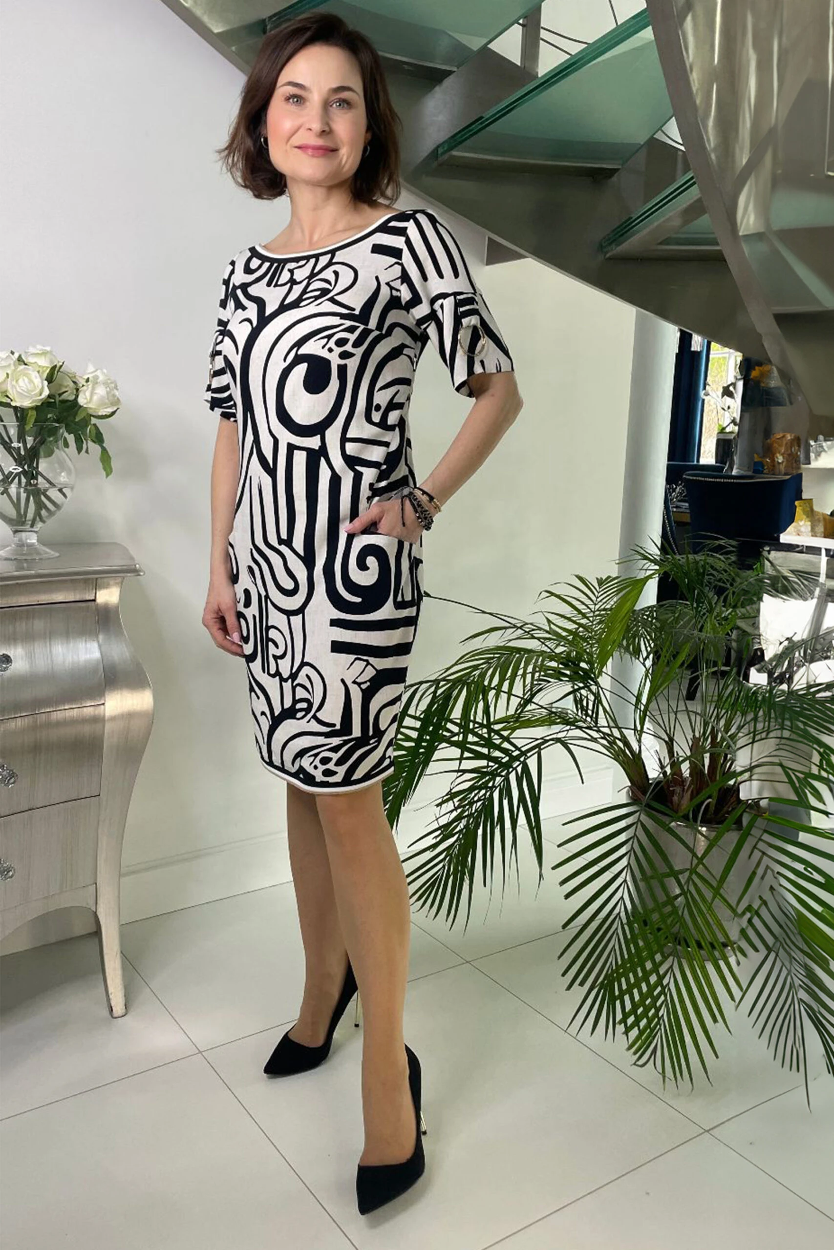 Sukienka Donna w biało czarnej tonacji, w geometryczny print.