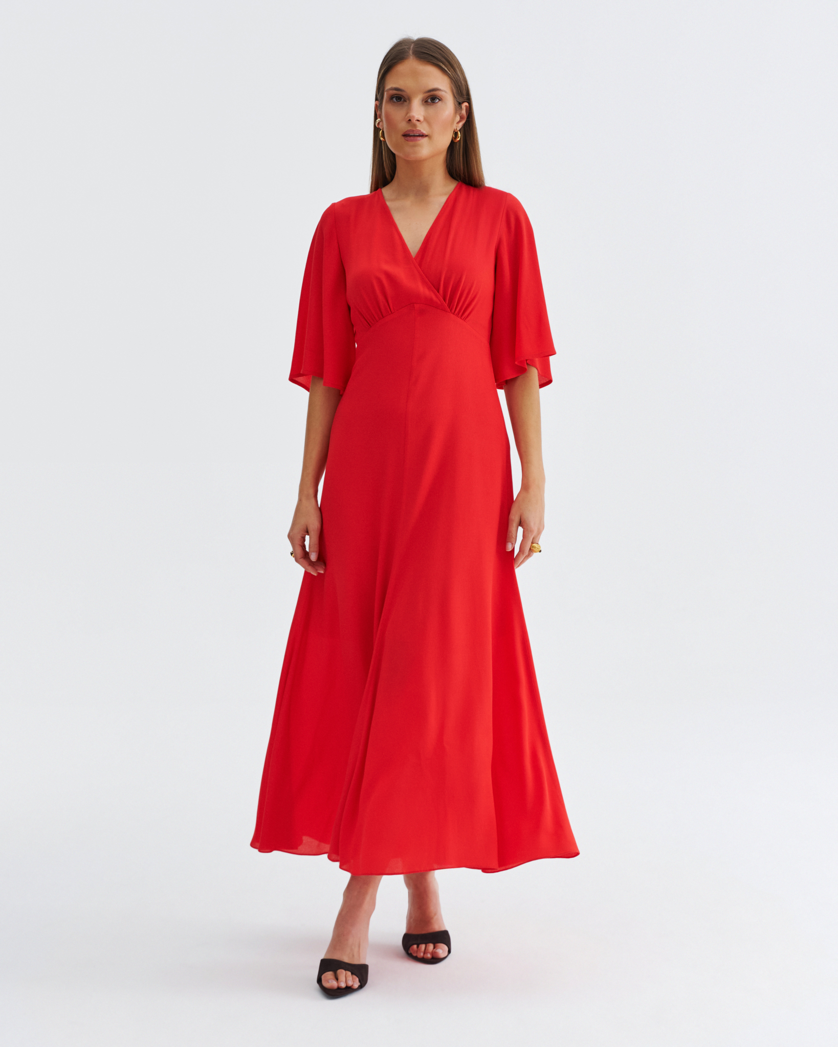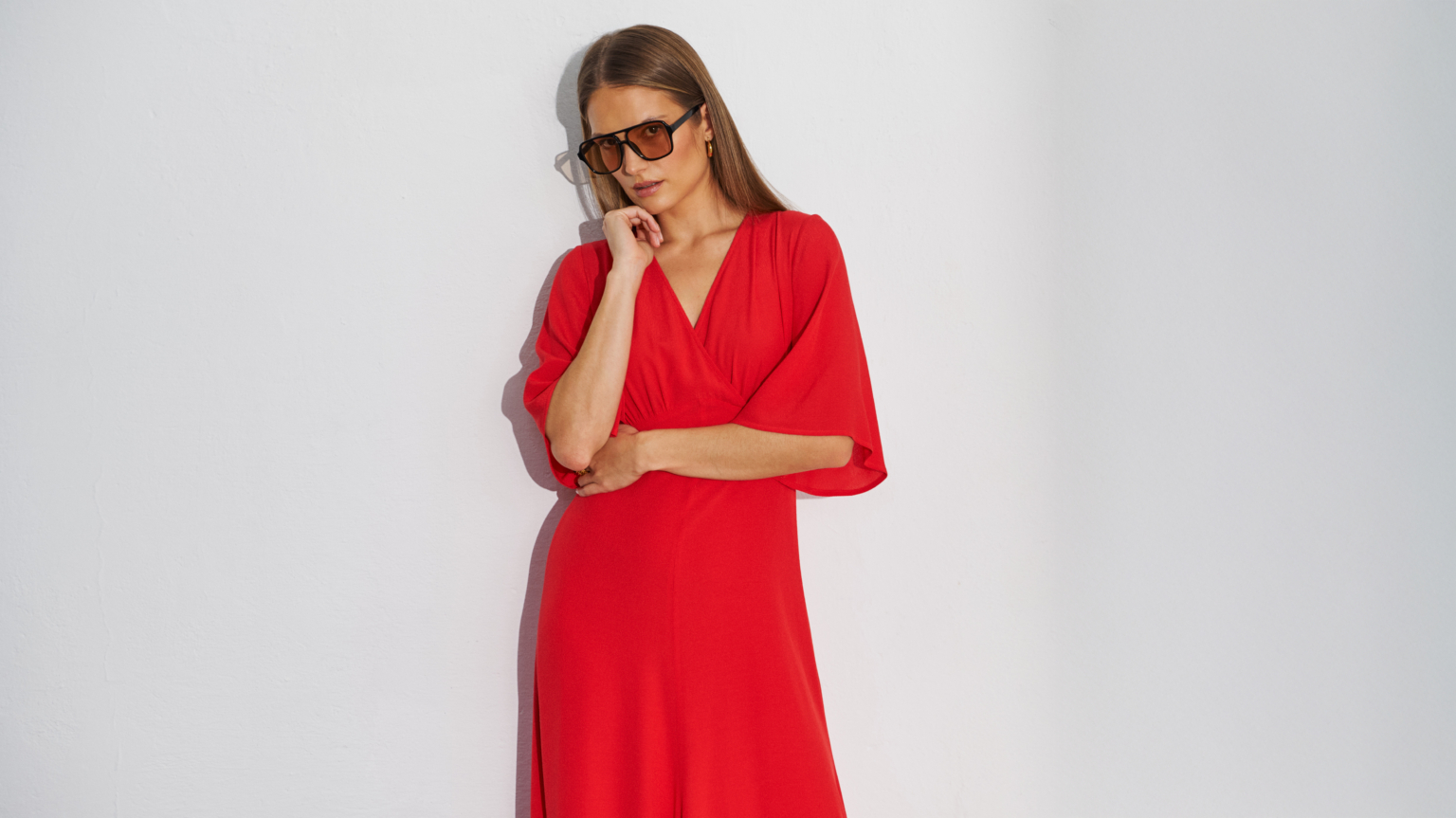 Zwiewna sukienka kopertowa z rozkloszowanym dołem