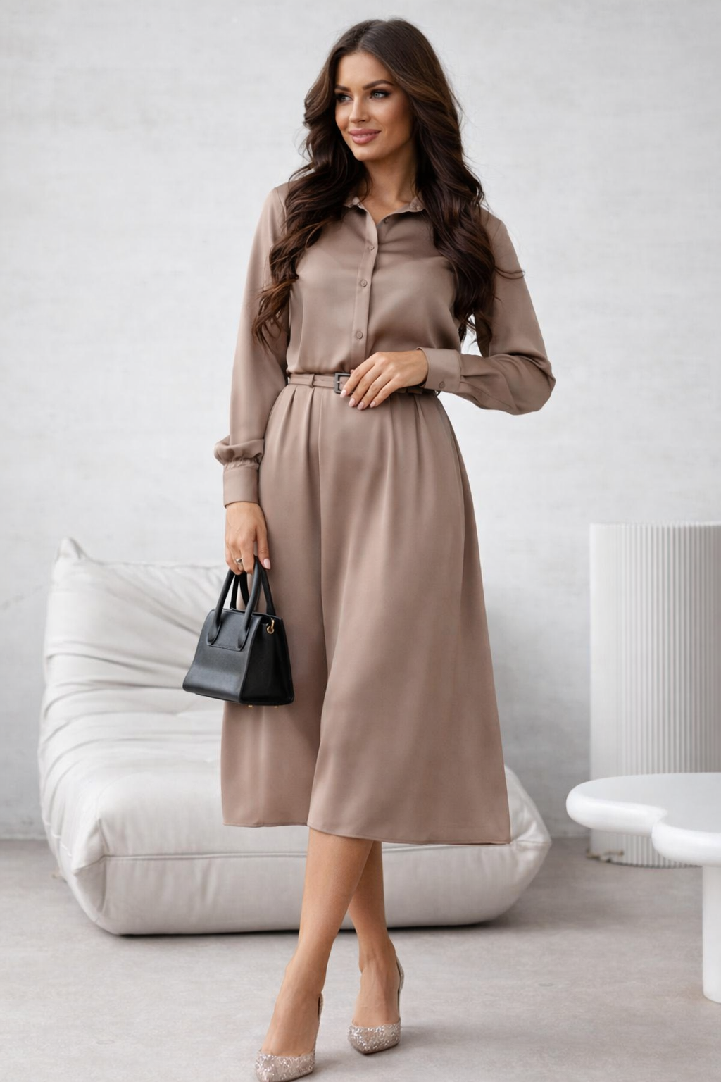Niezwykle elegancka sukienka z satyny w kolorze taupe.