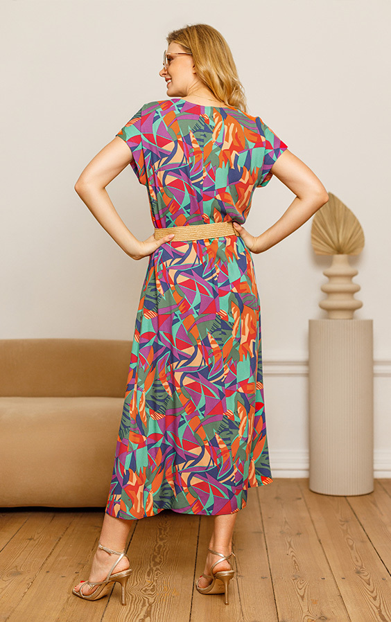 Naturalna wiskoza zapewni Ci komfort i swobodę nawet podczas najbardziej zabieganego dnia i jest przy tym miękka, a także przyjemna dla ciała. Sukienka Prisca zachwyci wszystkie miłośniczki kolorowych sukienek, które przyciągają oko! Dostępna jest na naszej stronie internetowej w szerokiej rozmiarówce. Nie jesteś pewna, który rozmiar wybrać? Zadzwoń do nas pod numer 608 203 931, pomożemy Ci wybrać model idealny dla Ciebie.