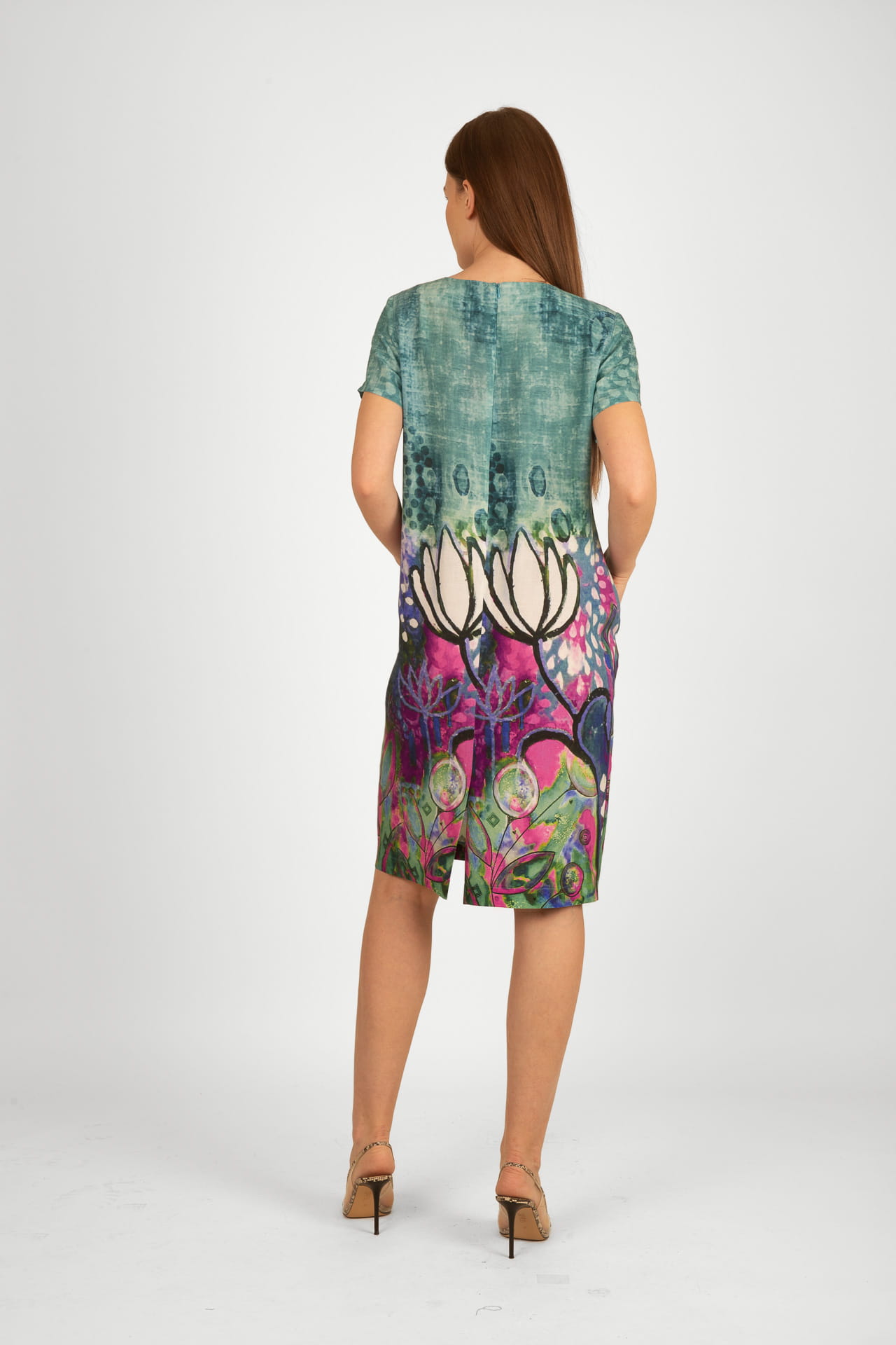 - sukienka taliowana z wpuszczanymi kieszeniami po bokach