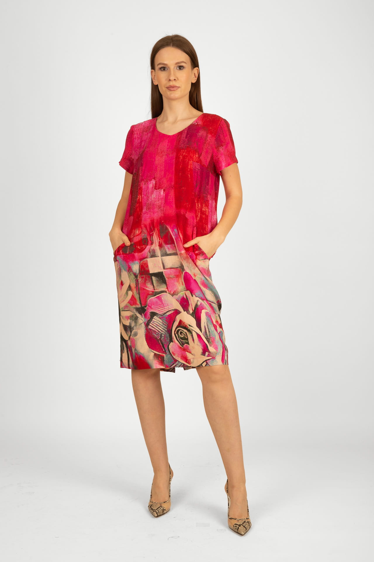 - sukienka taliowana z wpuszczanymi kieszeniami po bokach