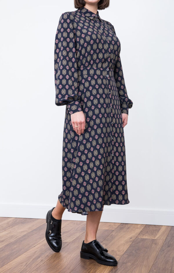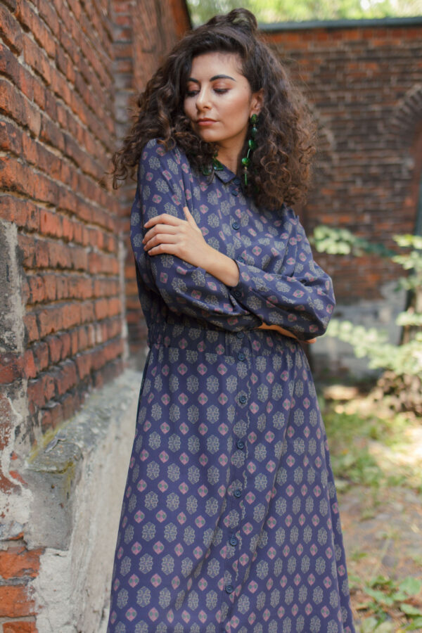Koszulowa sukienka długości midi. Wszyta guma pięknie podkreśla talię. Uszyta w Polsce. Czas wysyłki 1-2 dni.