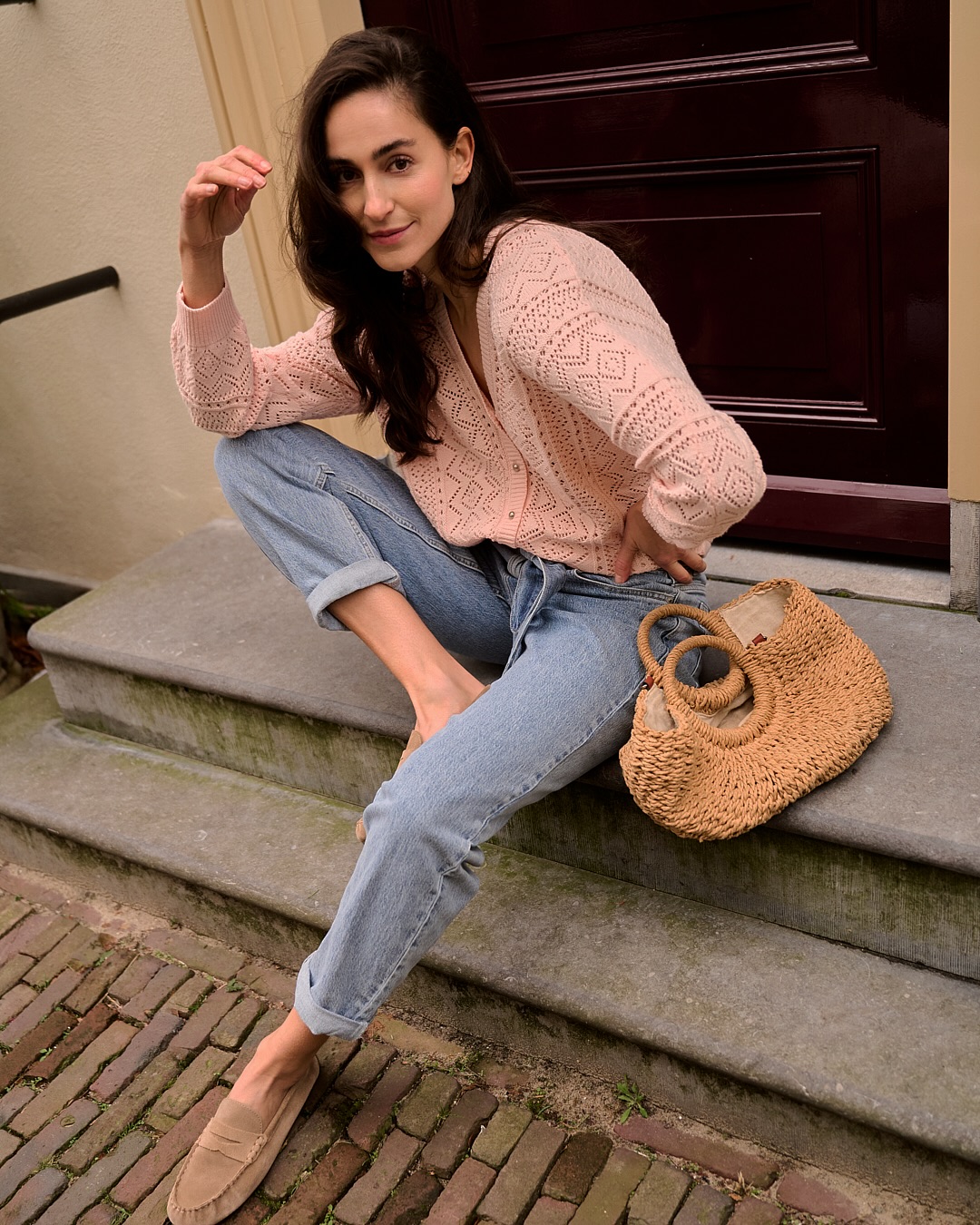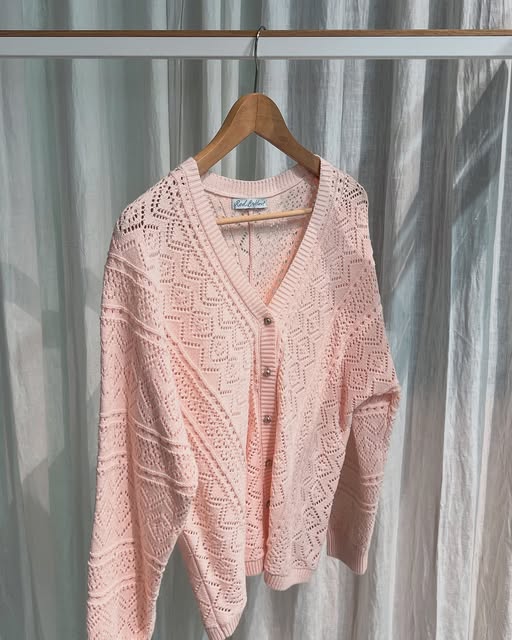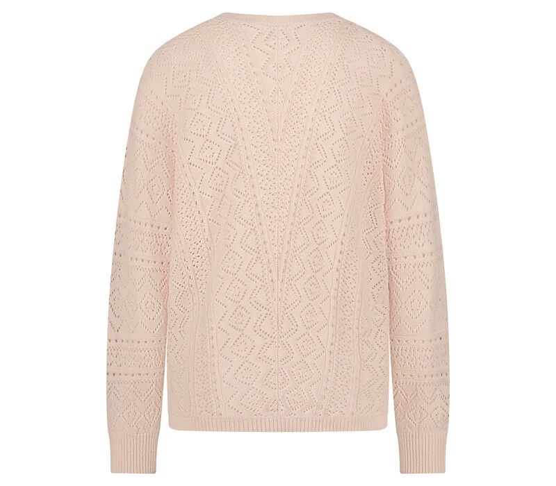 Miękki, ażurowy kardigan z dekoltem w serek i zapięciem na guziki z przodu. Posiada ściągacze wokół szyi, dołu i mankietów. Ażurowy kardigan ma obniżone ramiona i idealnie leży na sylwetce.