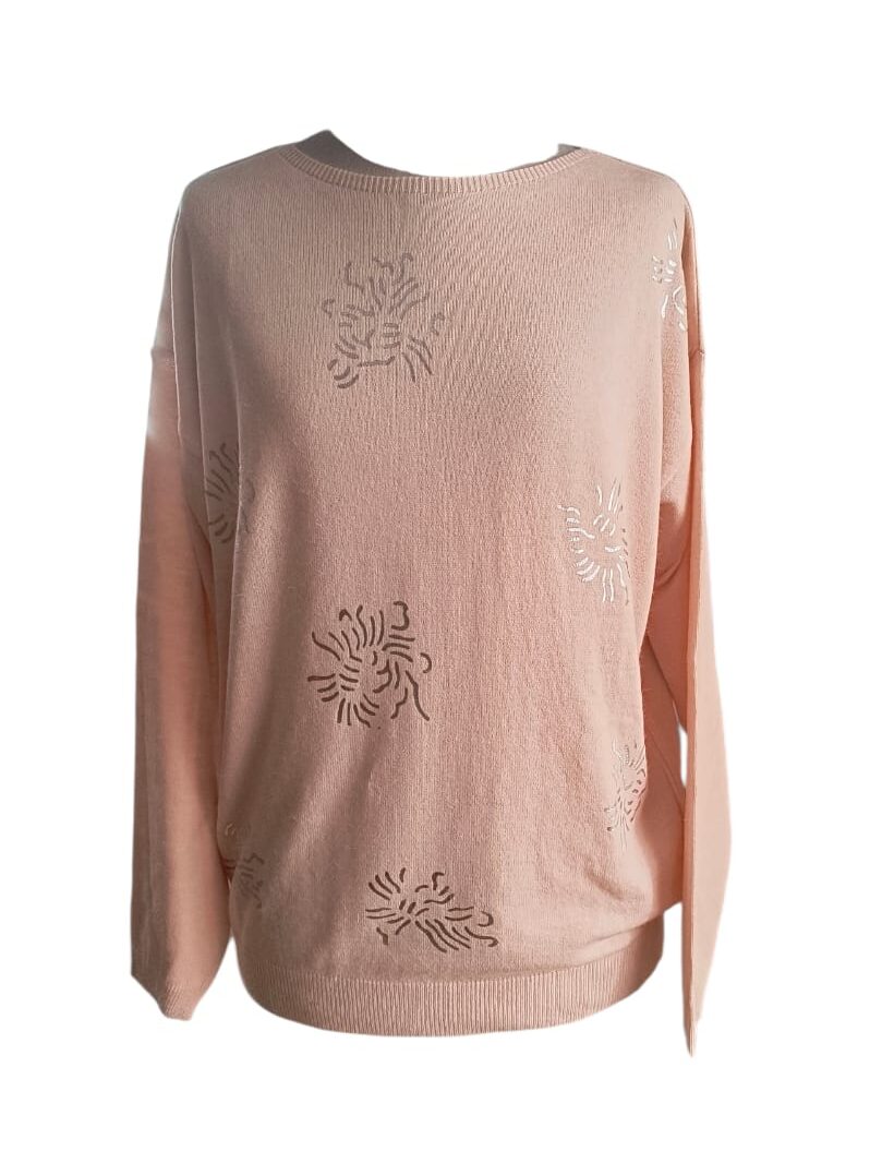Elegancka bluzka z dodatkiem angory w kolorze jasnej moreli/pudrowym.
