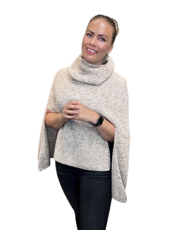 Uniwersalne ponczo z dodatkiem wełny, idealne jako element warstwowych stylizacji. Otwarte boki, duży golf to jego atuty. Połącz go z koszulą i jeansami i ciesz się nowoczesną, świeżą stylizacją.