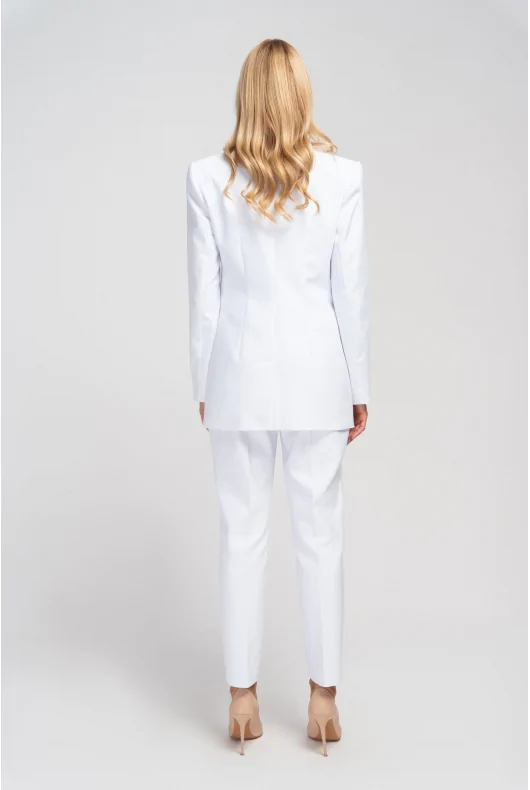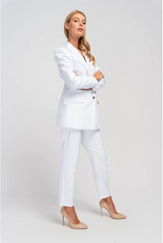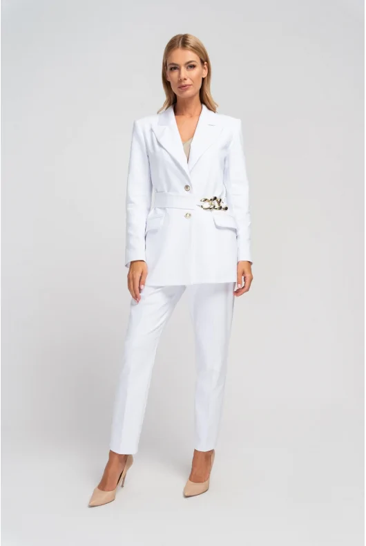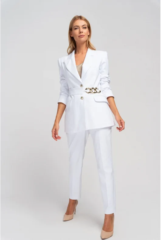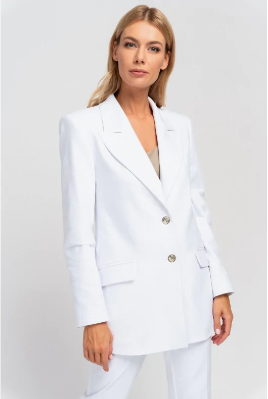 Marynarka zapinana jest na dwa metalowe guziki w kolorze złotym.